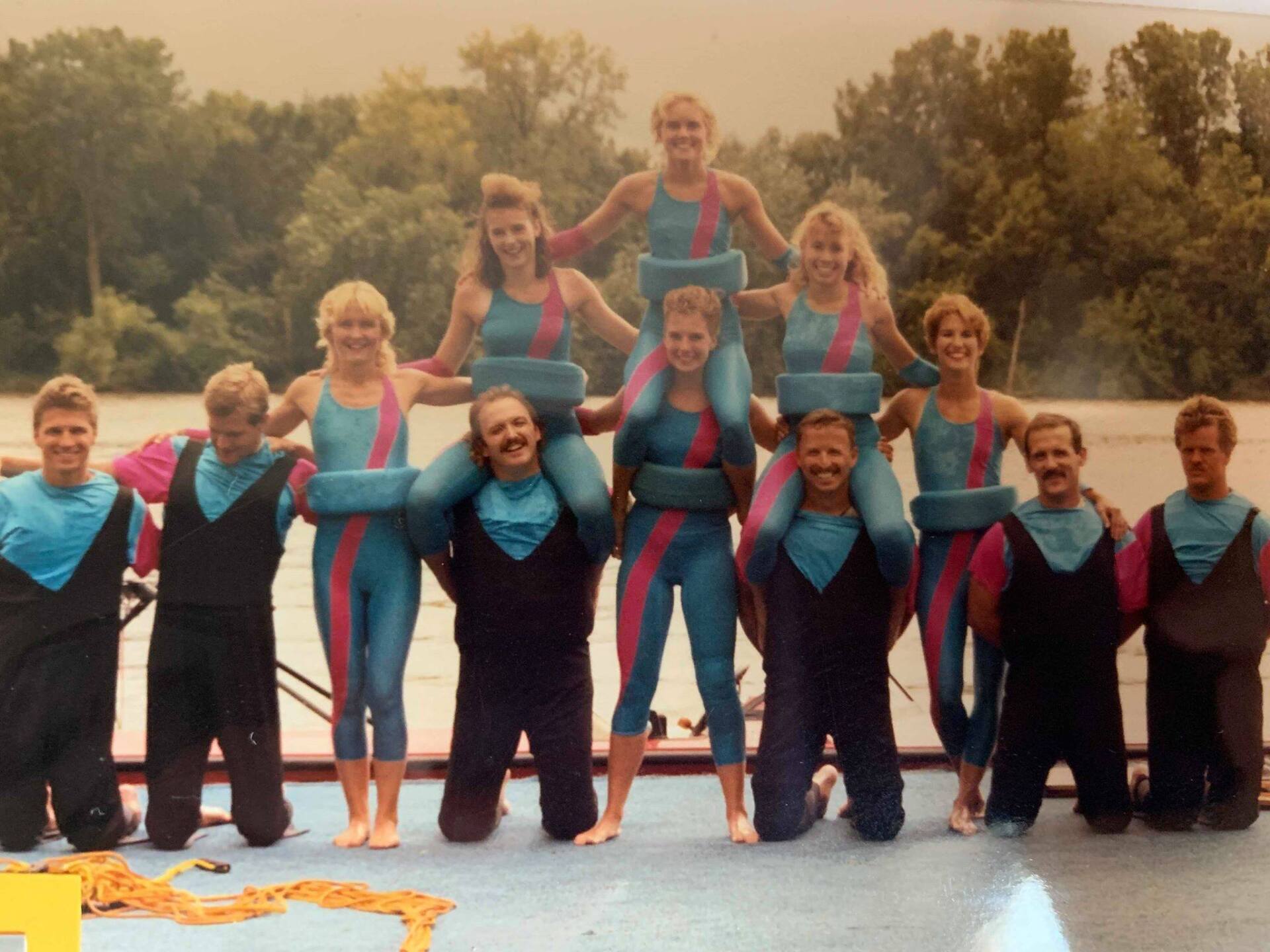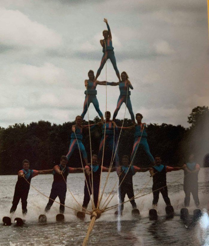 After five years in second place at the state level, we won first place in the State of Illinois and were awarded best dock and equipment crew, pickup boat crew and tow boat crew. At Nationals, we skied to a triumphant third place. We built our first 4-tier pyramid and our first 3-2 barefoot pyramid. The show was called "Backwater Bandstand". The Show Director was Gene Hast.