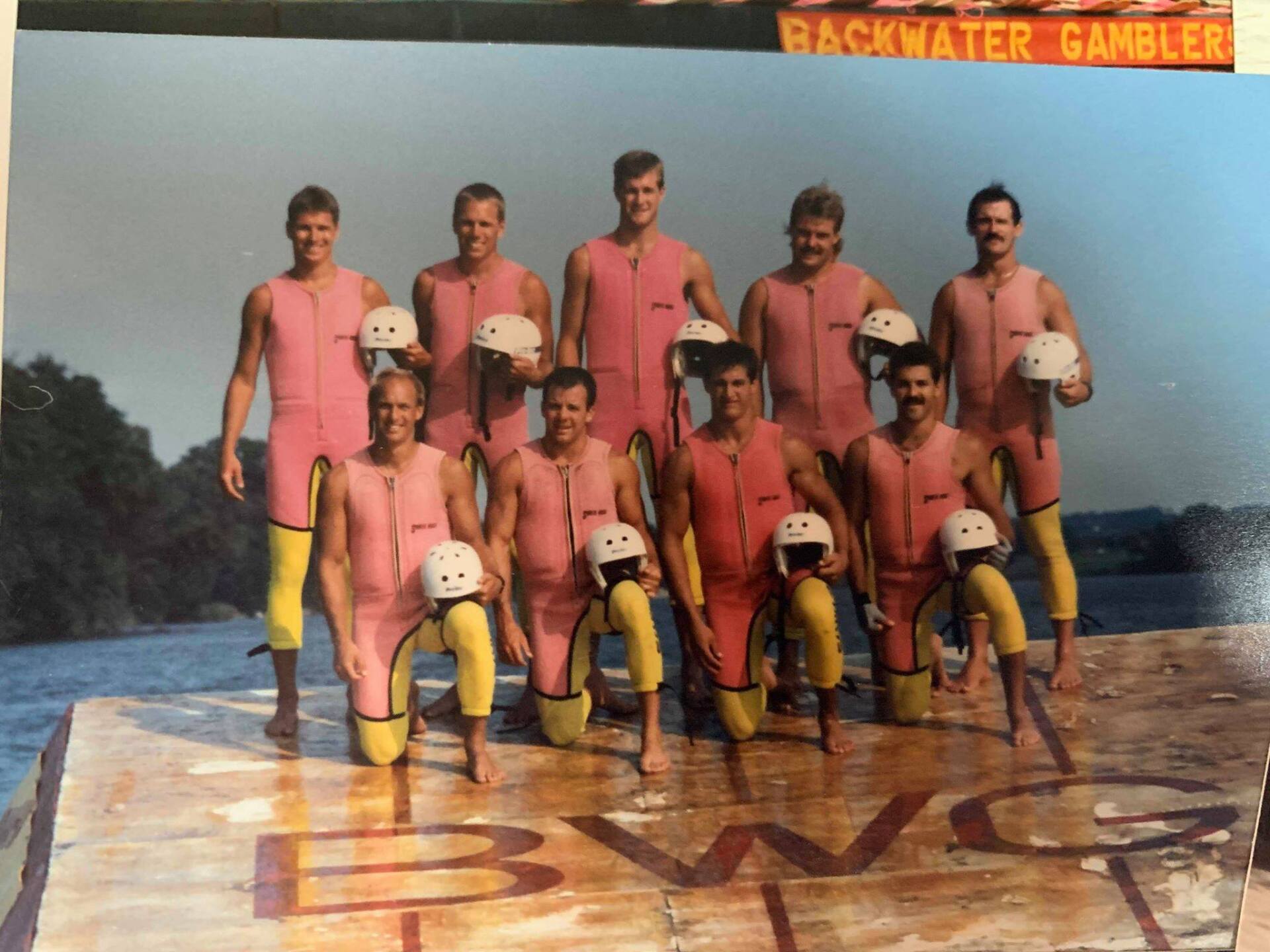 Our club won first place at the Illinois State tournament and received awards for best announcing, pickup boat crew and tow boat driving. We finished second at Lambs' Farm Invitational tournament. At Nationals, highlights included a seventeen female slalom ballet line and our first four man helicopter spin over the jump. The show was called "DEC-Aid". The Show Director was Jim Post.
