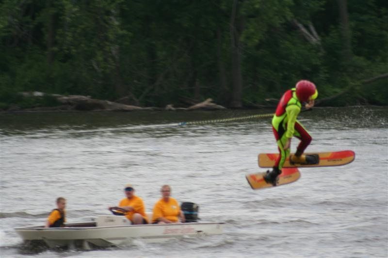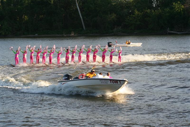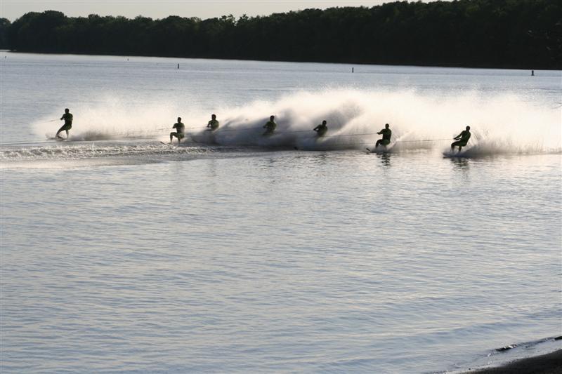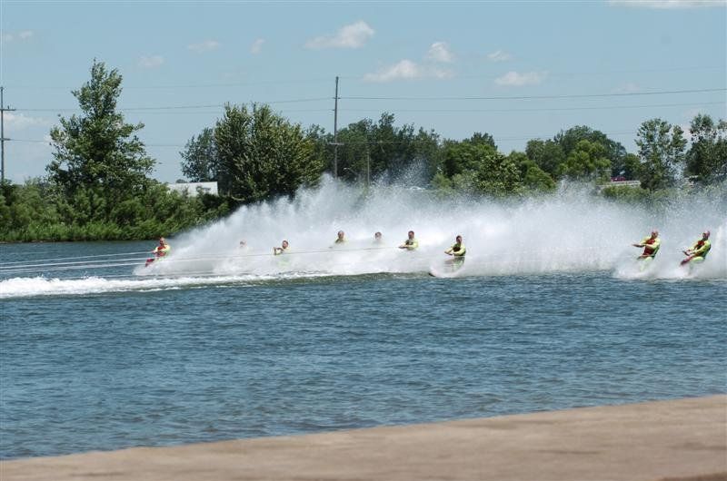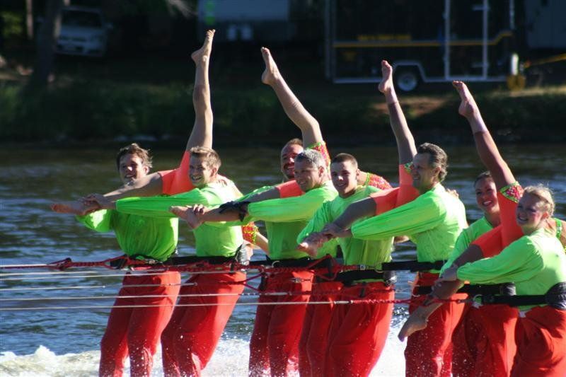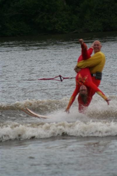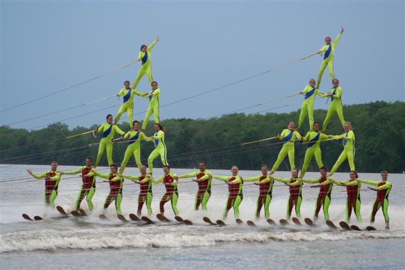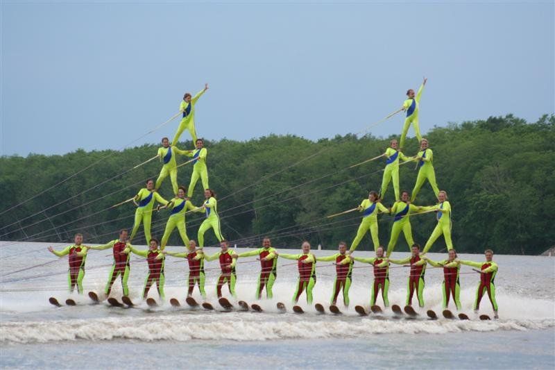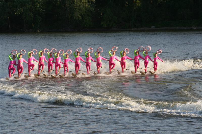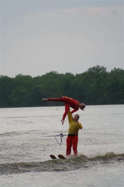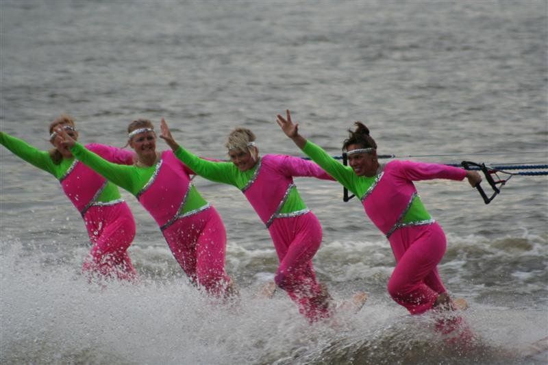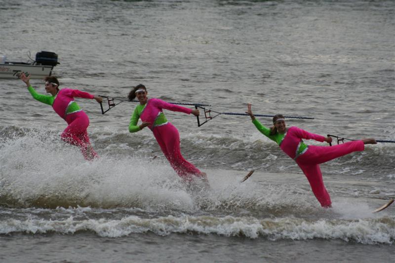2008 began with a flood. We didn't get on the water for the most of June and then were flooded again for part of July. The first tournament that we were scheduled to attend was the Mercury Invitational Tournament in Janesville Wisconsin. Due to the flooding, this tournament was canceled. We place 2nd at the Central Region Tournament held in Warsaw, Indiana. We were scheduled to host the Division II National Tournament. Because of the flooding on the Rock River, this tournament was moved to Indiana. The National Tournament was suppose to be held in Janesville, Wisconsin, but floods forced the tournament to move to Wisconsin Rapids. We skied first on Sunday morning in 42 degree weather. We did remarkably well for the limited skiing that we had all season. We brought home an 8th place victory. "Corporate Merger" was the name of this year's theme. Brint and Gail Burrill were the Show Directors.