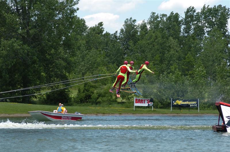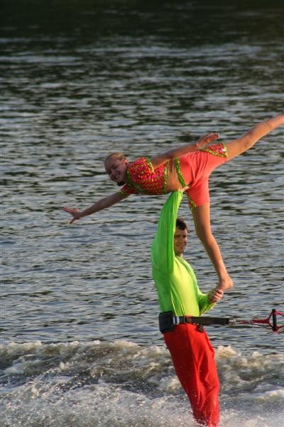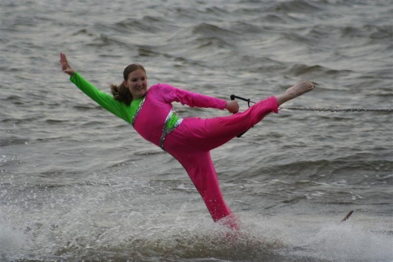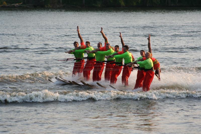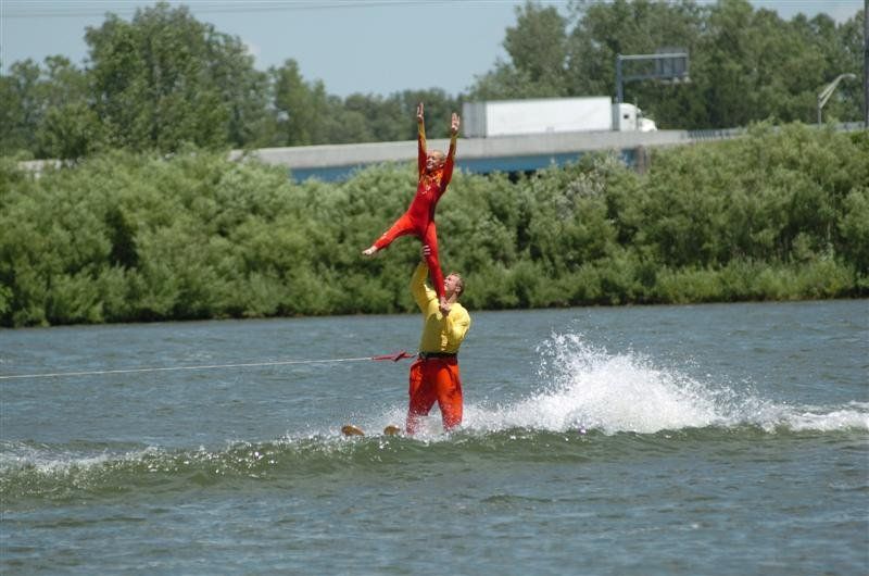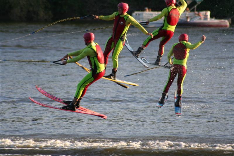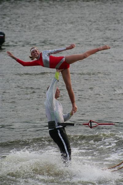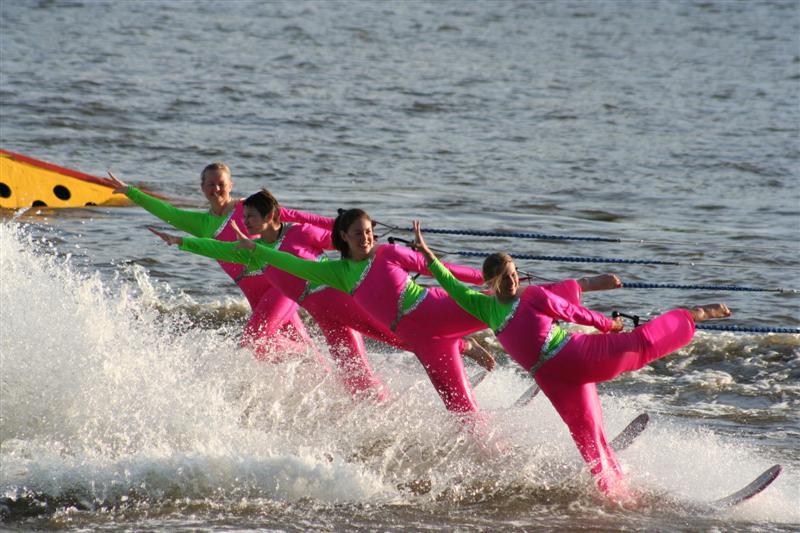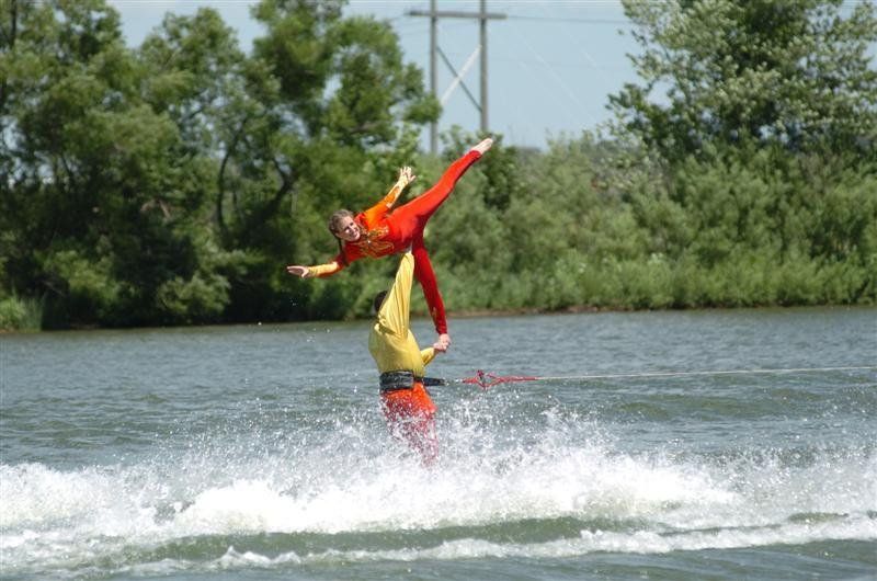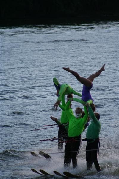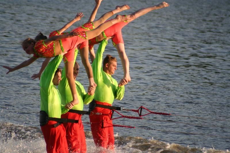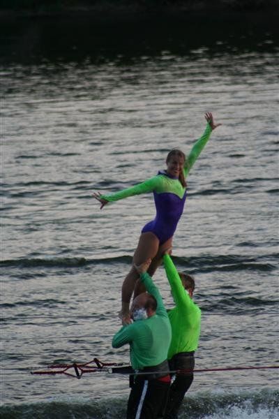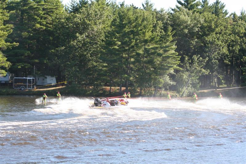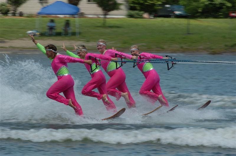 2008 began with a flood. We didn't get on the water for the most of June and then were flooded again for part of July. The first tournament that we were scheduled to attend was the Mercury Invitational Tournament in Janesville Wisconsin. Due to the flooding, this tournament was canceled. We place 2nd at the Central Region Tournament held in Warsaw, Indiana. We were scheduled to host the Division II National Tournament. Because of the flooding on the Rock River, this tournament was moved to Indiana. The National Tournament was suppose to be held in Janesville, Wisconsin, but floods forced the tournament to move to Wisconsin Rapids. We skied first on Sunday morning in 42 degree weather. We did remarkably well for the limited skiing that we had all season. We brought home an 8th place victory. "Corporate Merger" was the name of this year's theme. Brint and Gail Burrill were the Show Directors.