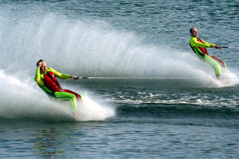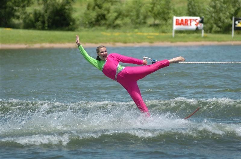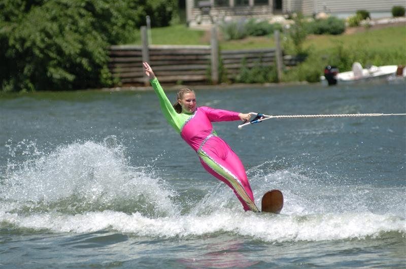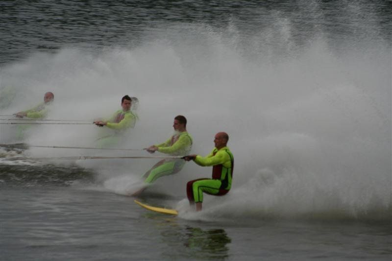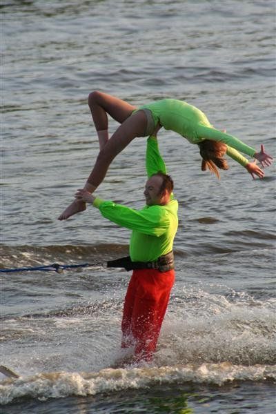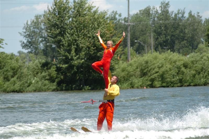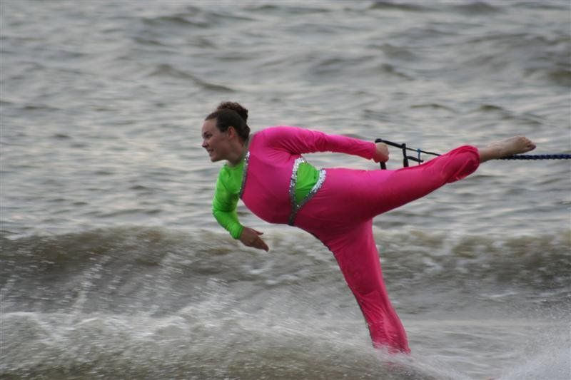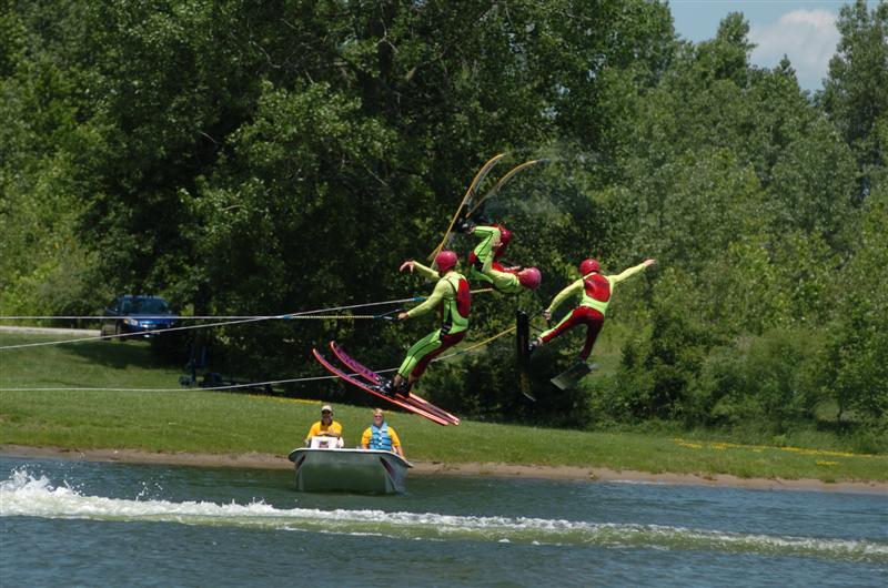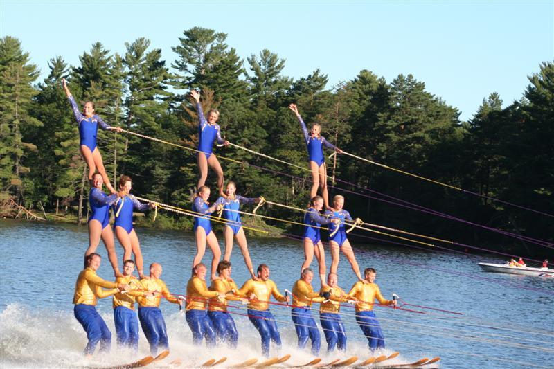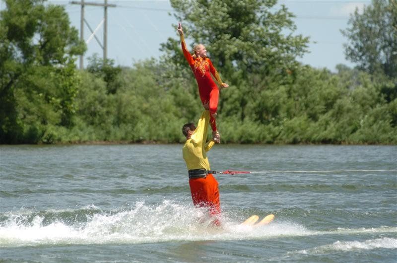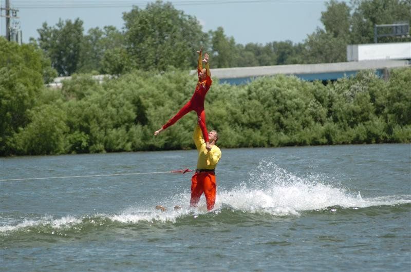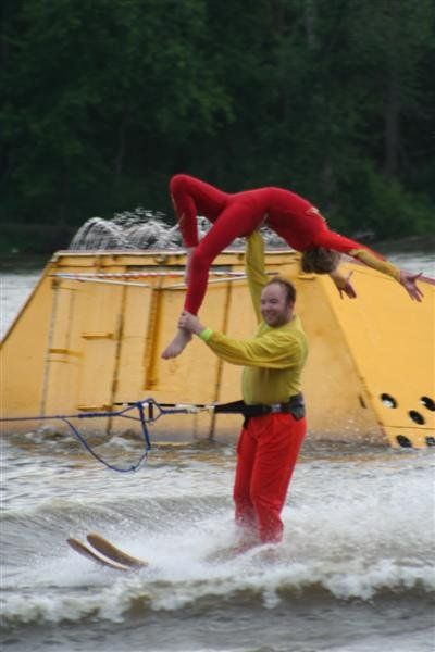 2008 began with a flood. We didn't get on the water for the most of June and then were flooded again for part of July. The first tournament that we were scheduled to attend was the Mercury Invitational Tournament in Janesville Wisconsin. Due to the flooding, this tournament was canceled. We place 2nd at the Central Region Tournament held in Warsaw, Indiana. We were scheduled to host the Division II National Tournament. Because of the flooding on the Rock River, this tournament was moved to Indiana. The National Tournament was suppose to be held in Janesville, Wisconsin, but floods forced the tournament to move to Wisconsin Rapids. We skied first on Sunday morning in 42 degree weather. We did remarkably well for the limited skiing that we had all season. We brought home an 8th place victory. "Corporate Merger" was the name of this year's theme. Brint and Gail Burrill were the Show Directors.