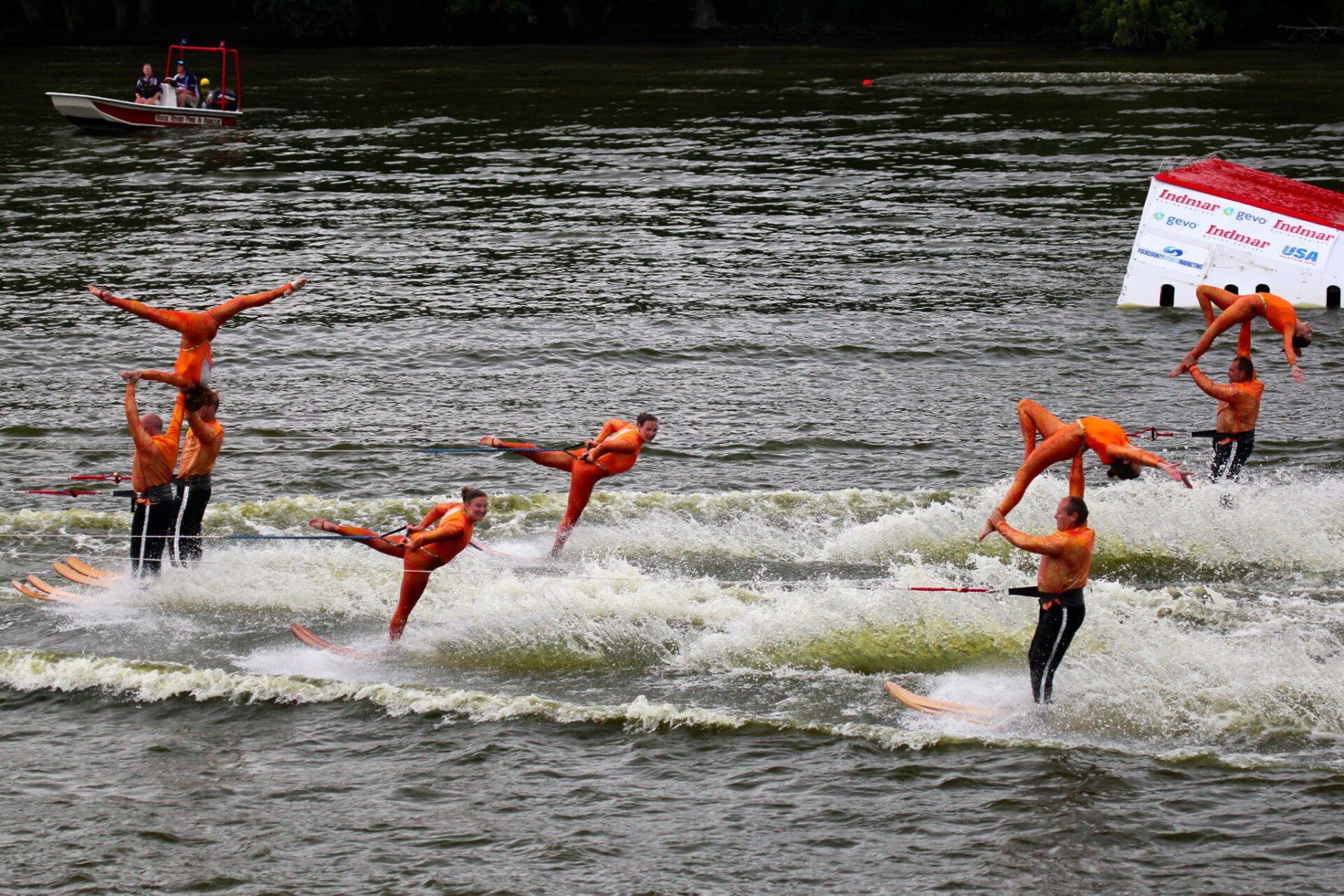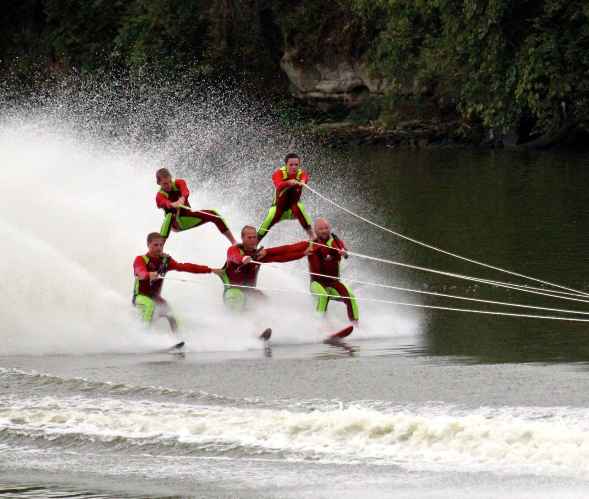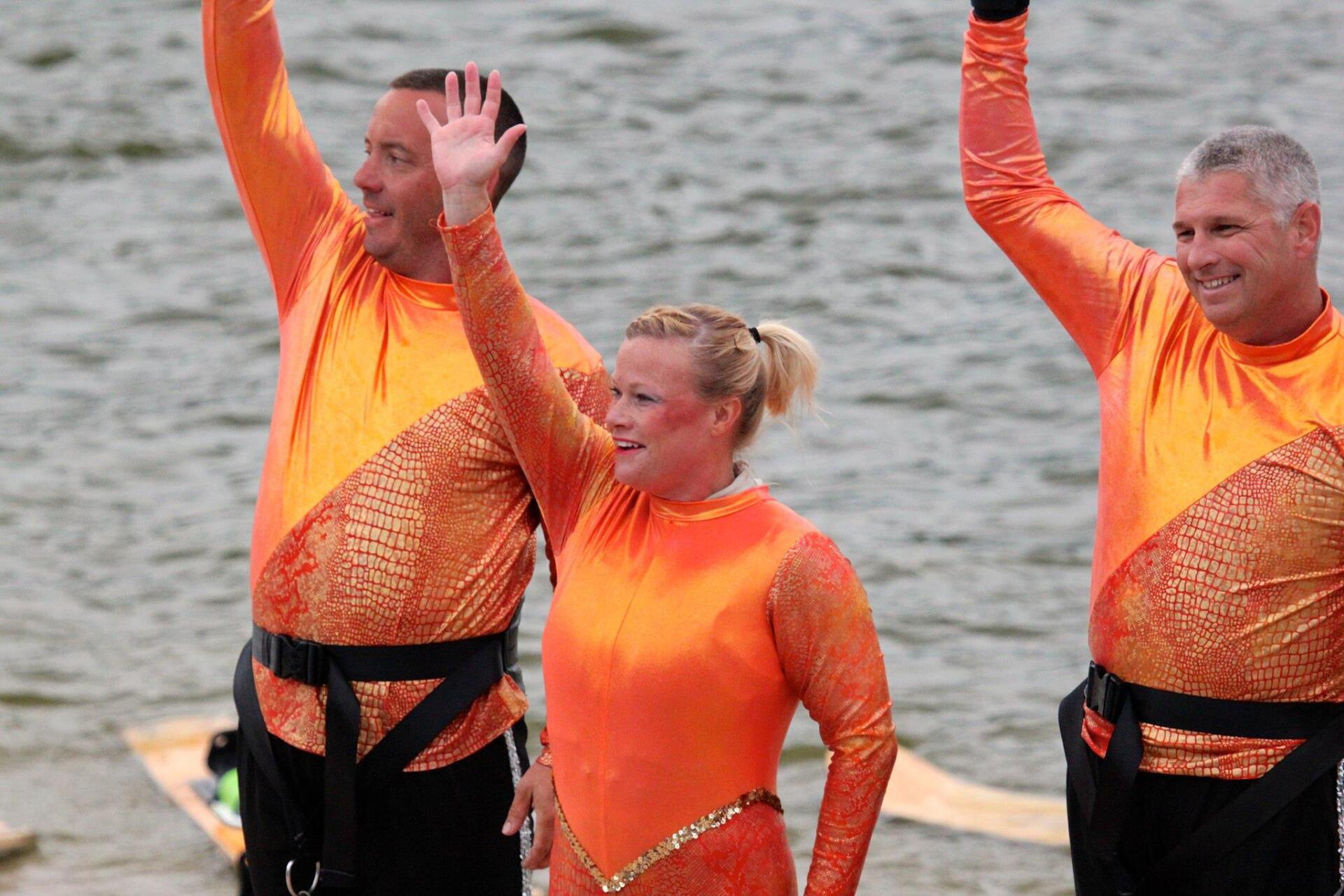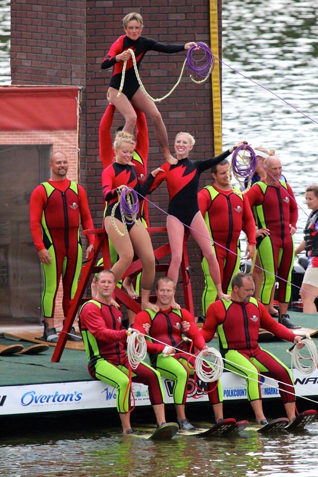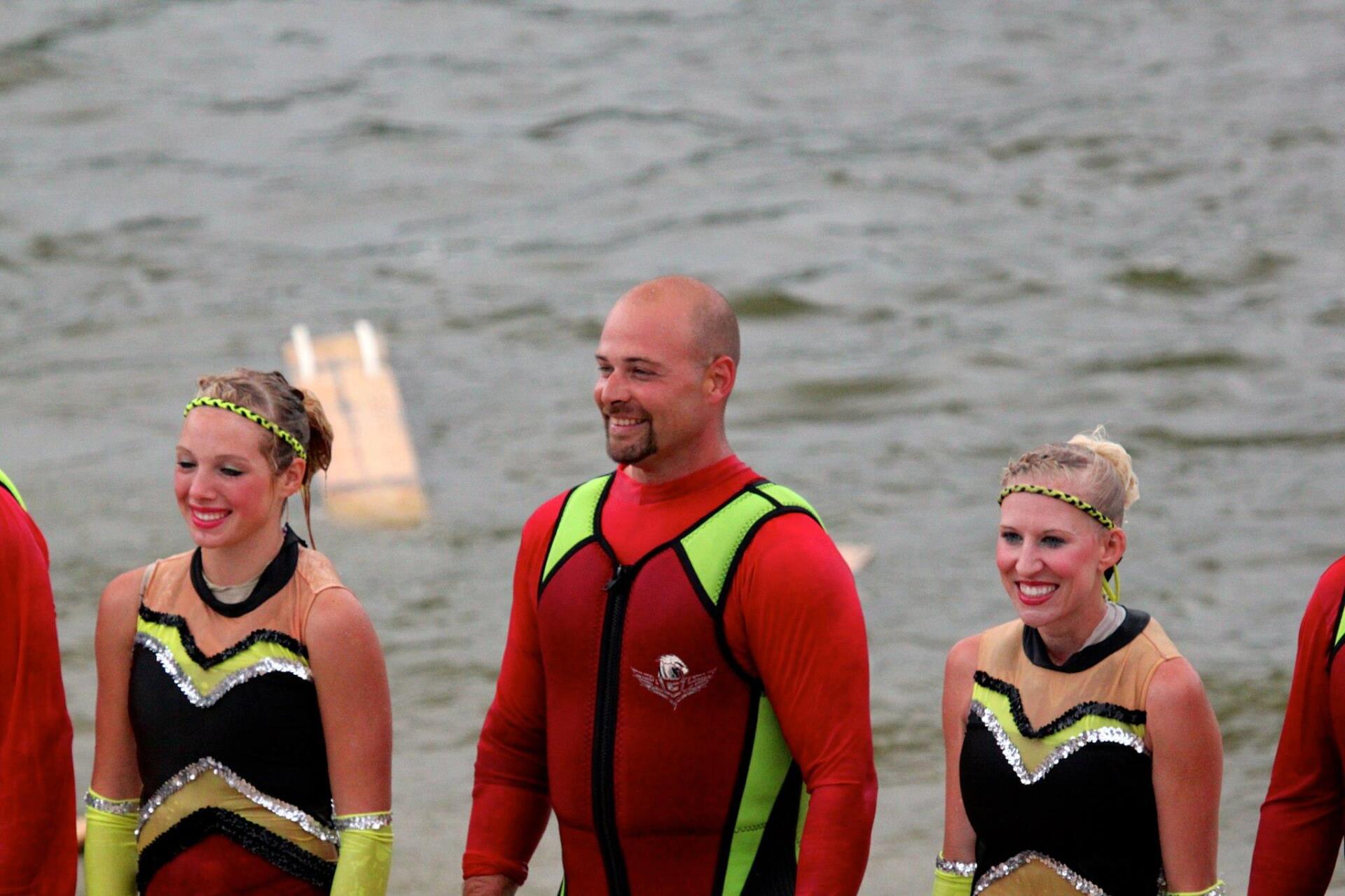 In 2012, our team maintained our large size with over 140 members. We placed second at the Central Regional Tournament at our home site. We finished in third place at the National Tournament in Janesville, WI. Trista Foster won the Willa Cook Award at the National Tournament for being the best female skier in the nation. She was also later named the NSSA Female Show Skier of the Year for 2012. In August shortly after the National tournament, the Backwater Gamblers successfully built our first 5 tier pyramid. The theme was 'Rock River Fire and Rescue'. The show directors were Scott Allender, Larry Anderson and Tagen Tipton.