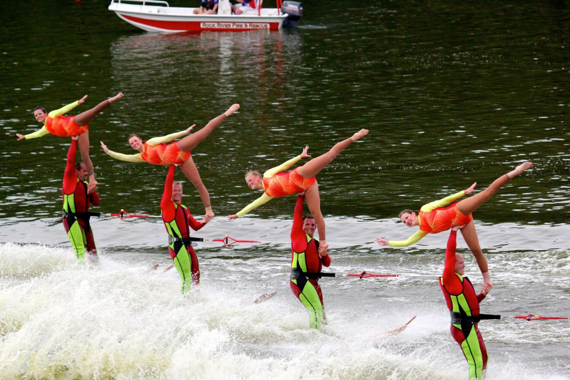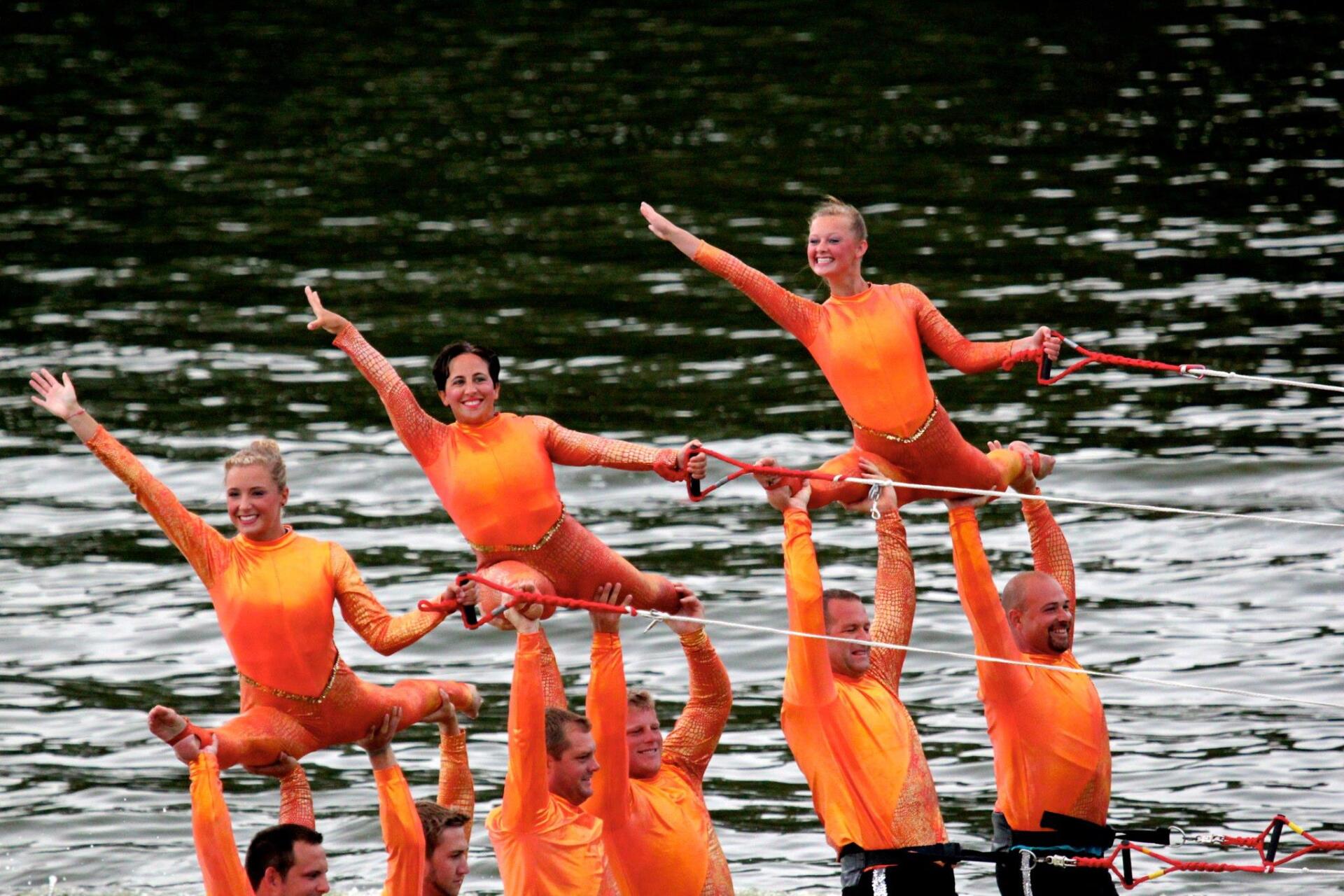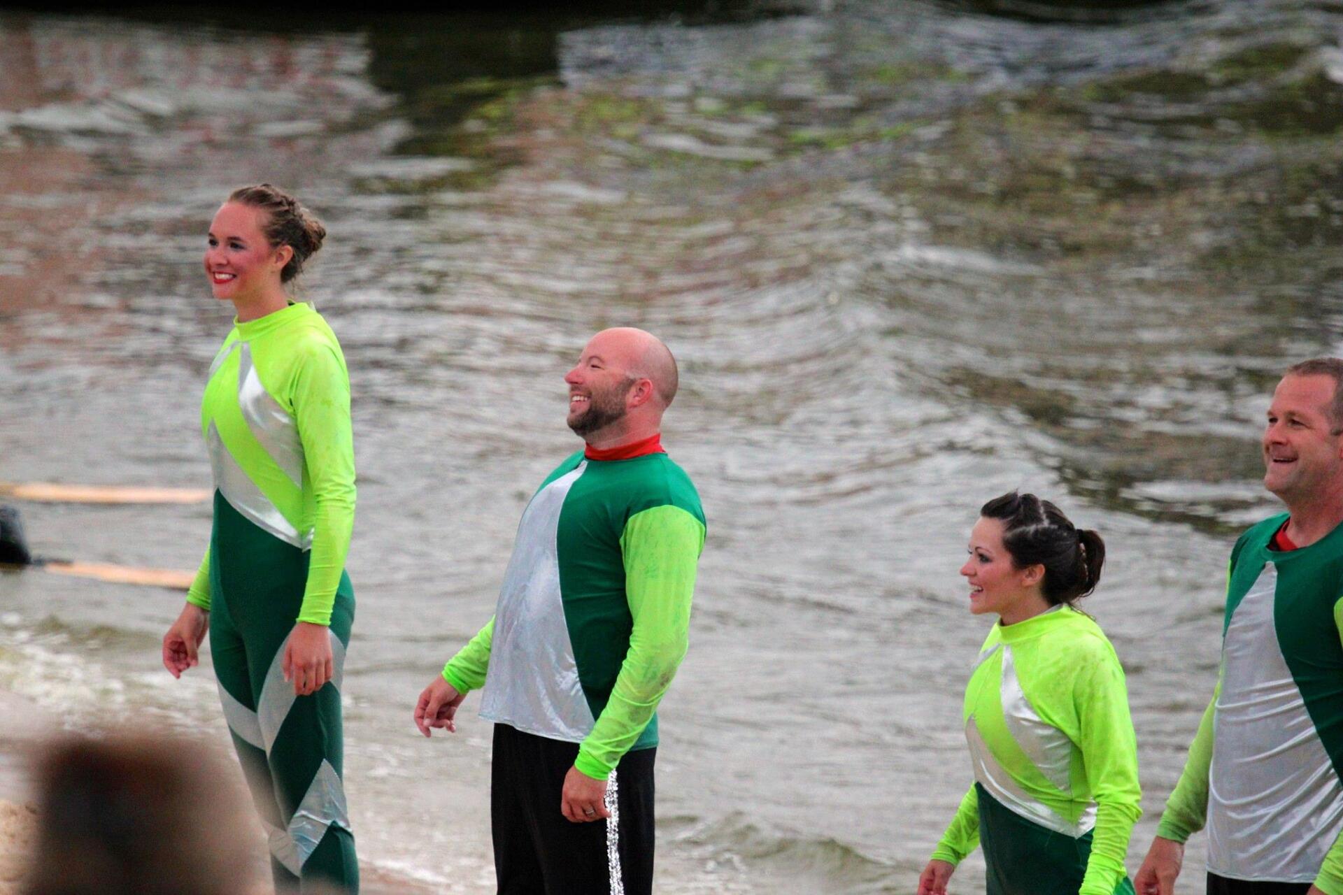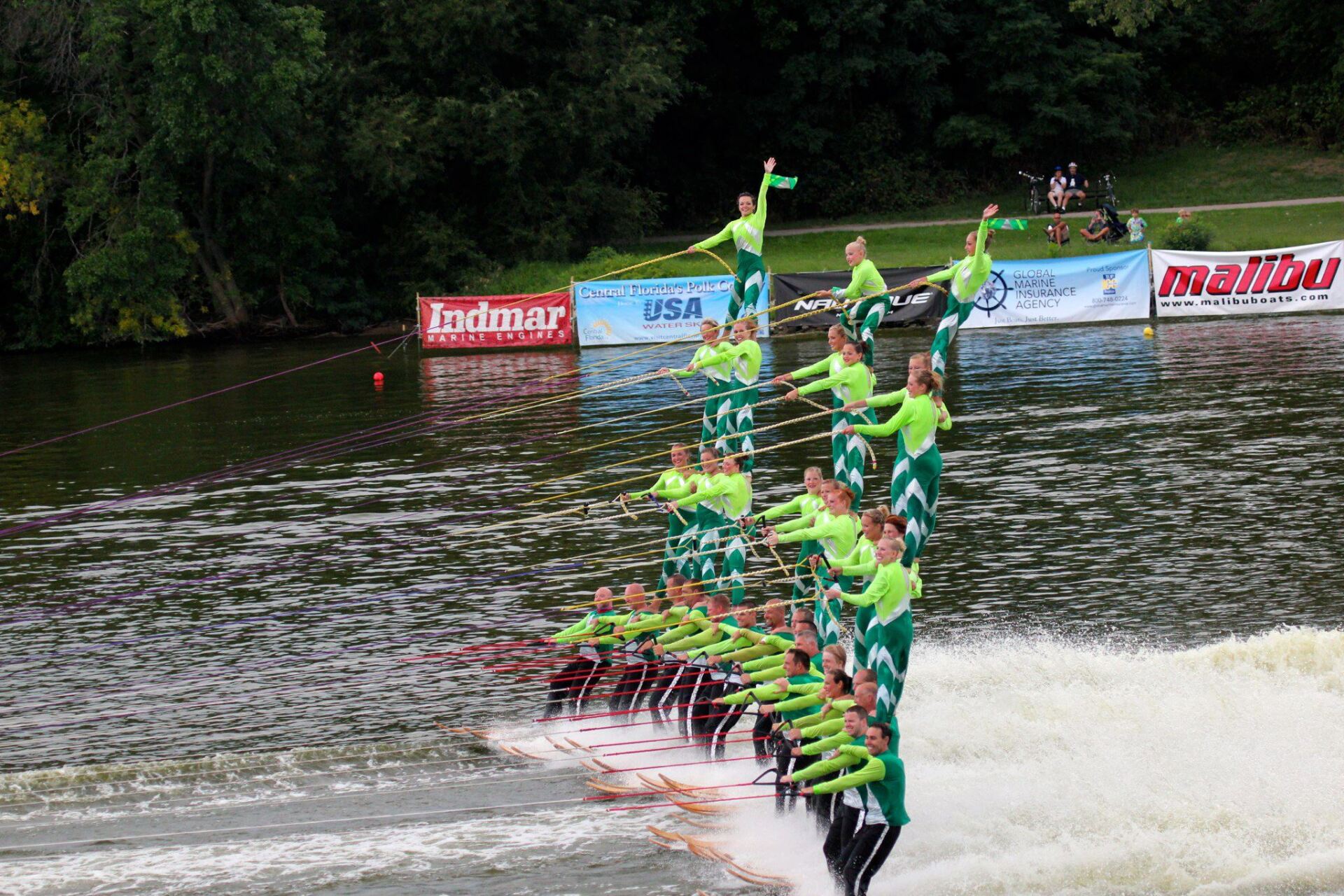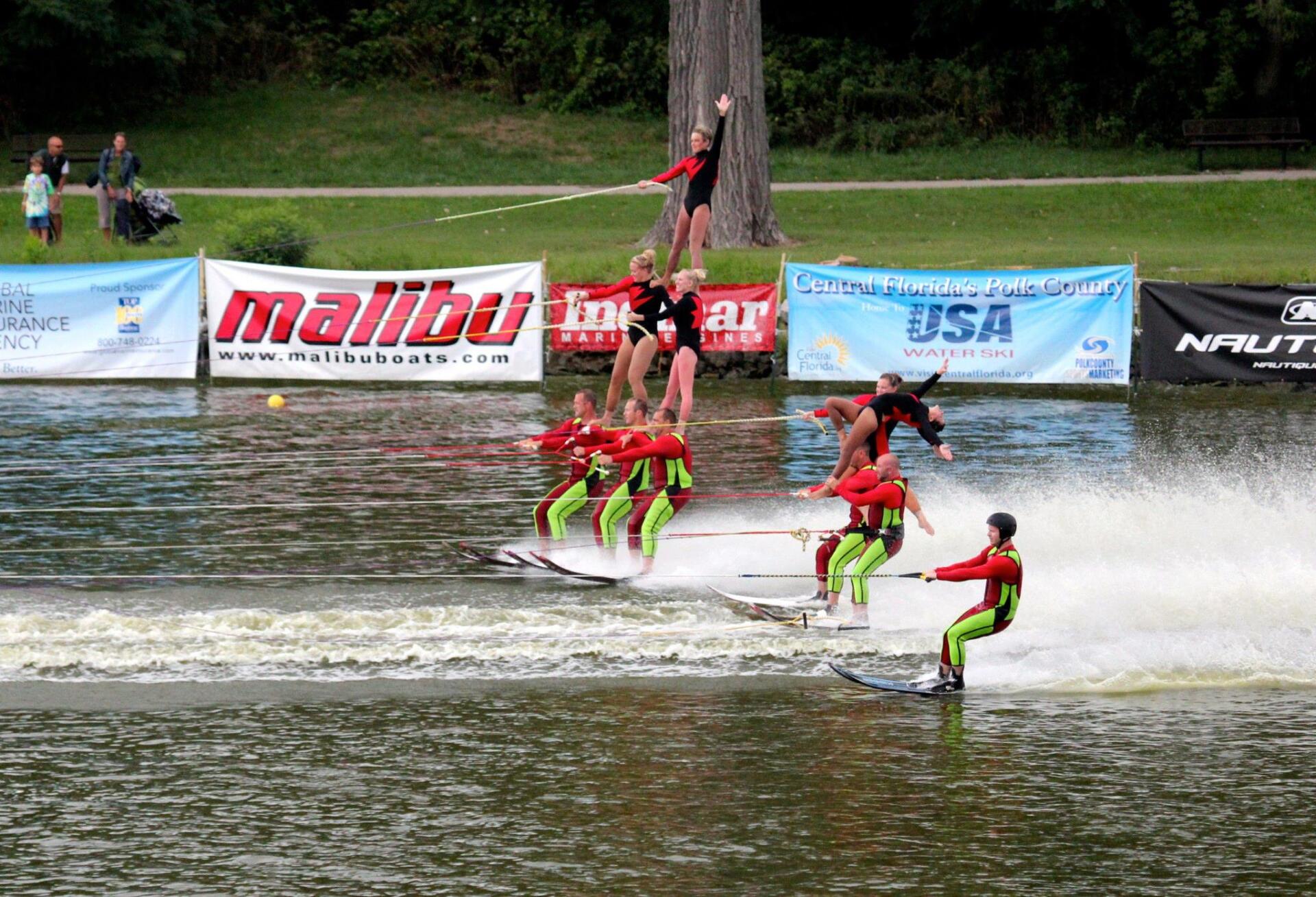 In 2012, our team maintained our large size with over 140 members. We placed second at the Central Regional Tournament at our home site. We finished in third place at the National Tournament in Janesville, WI. Trista Foster won the Willa Cook Award at the National Tournament for being the best female skier in the nation. She was also later named the NSSA Female Show Skier of the Year for 2012. In August shortly after the National tournament, the Backwater Gamblers successfully built our first 5 tier pyramid. The theme was 'Rock River Fire and Rescue'. The show directors were Scott Allender, Larry Anderson and Tagen Tipton.