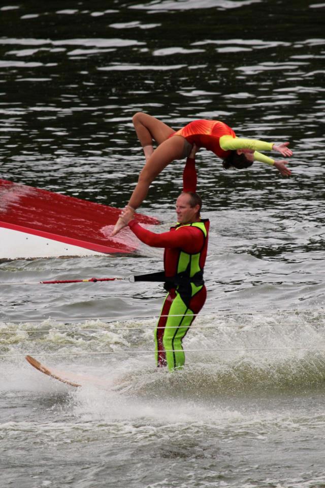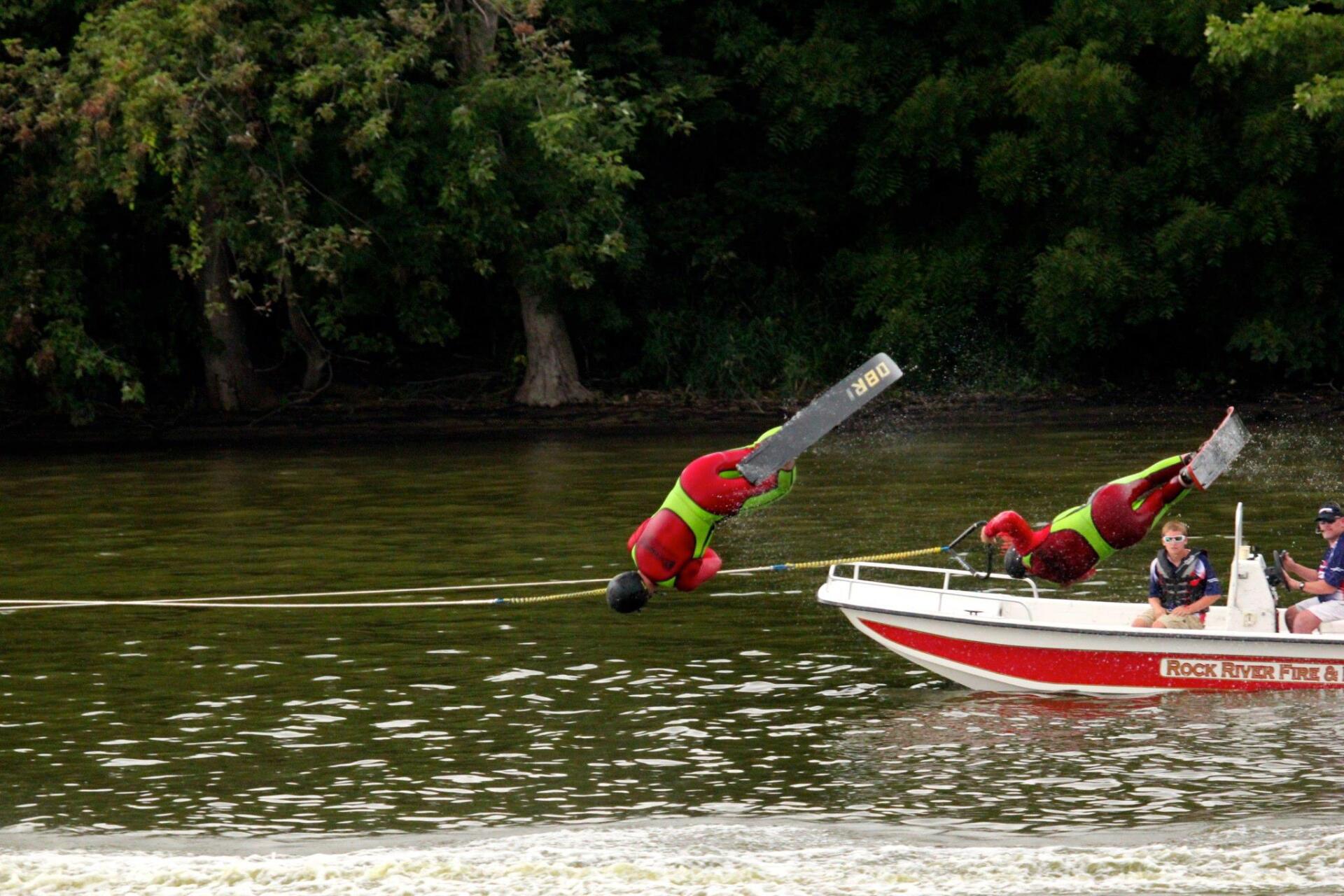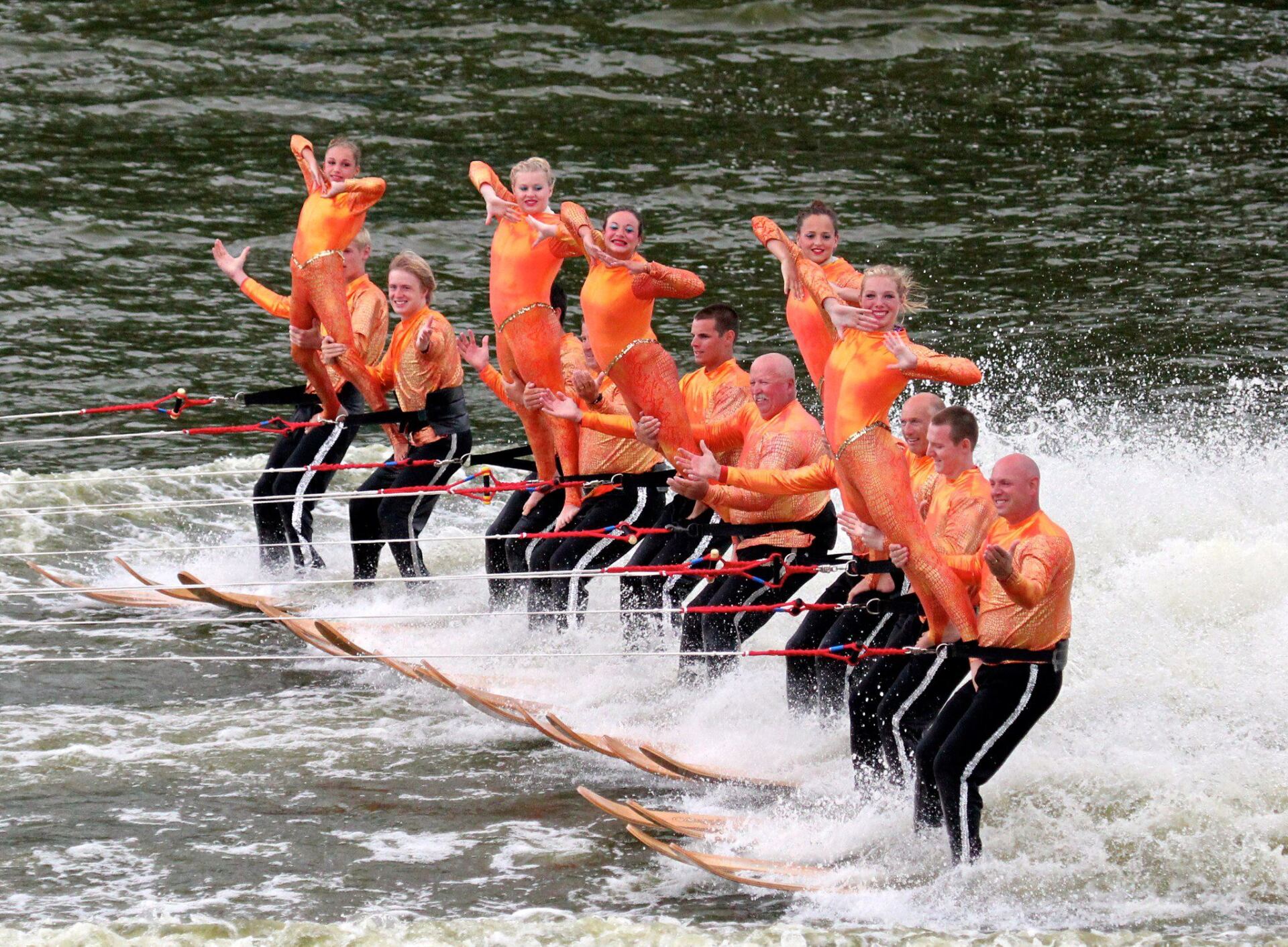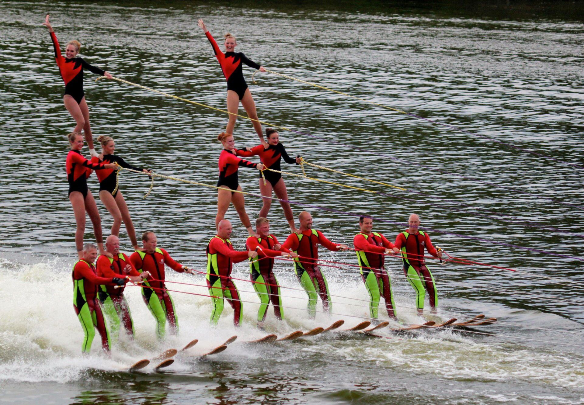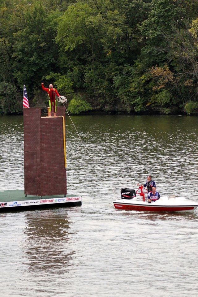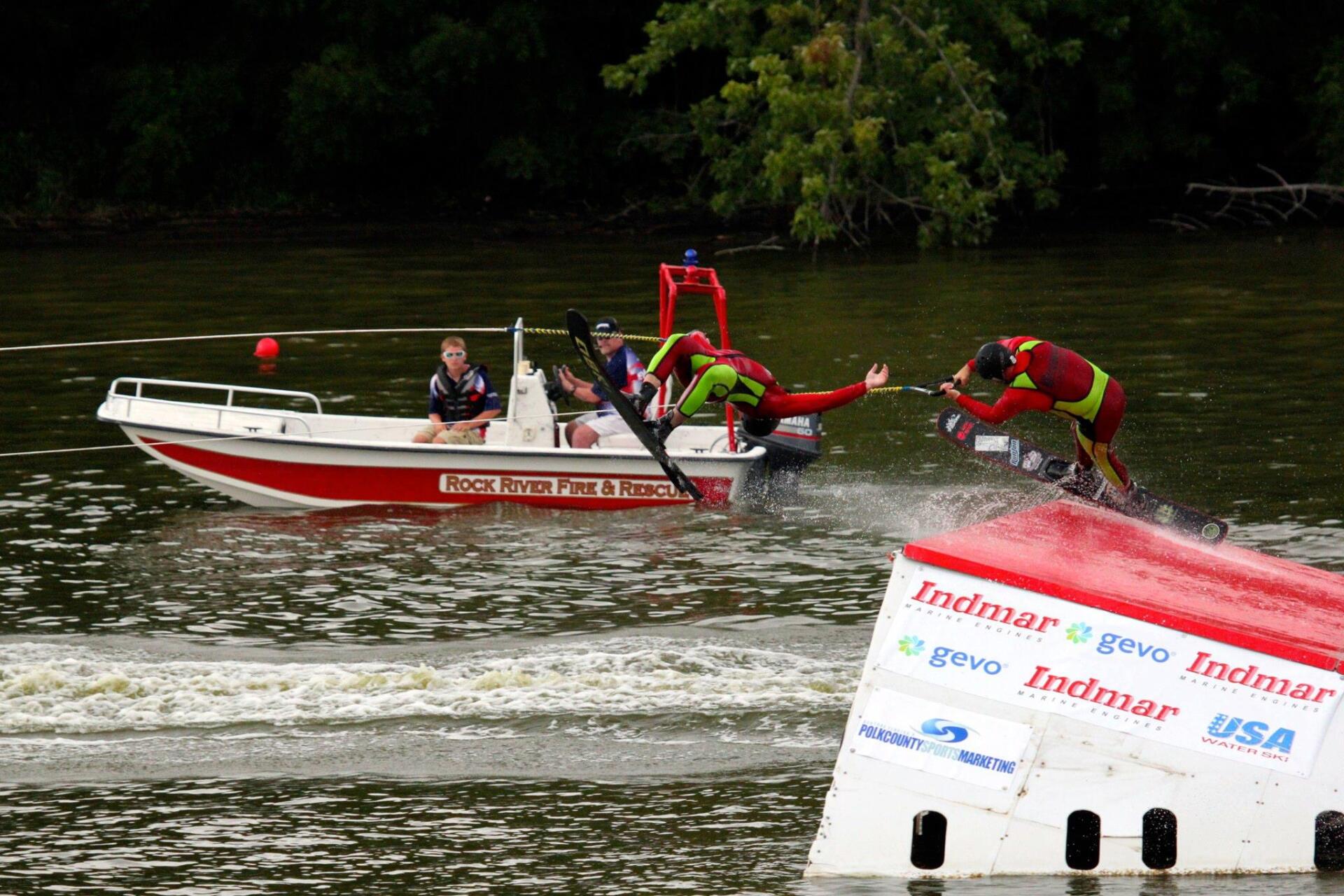In 2012, our team maintained our large size with over 140 members. We placed second at the Central Regional Tournament at our home site. We finished in third place at the National Tournament in Janesville, WI. Trista Foster won the Willa Cook Award at the National Tournament for being the best female skier in the nation. She was also later named the NSSA Female Show Skier of the Year for 2012. In August shortly after the National tournament, the Backwater Gamblers successfully built our first 5 tier pyramid. The theme was 'Rock River Fire and Rescue'. The show directors were Scott Allender, Larry Anderson and Tagen Tipton.