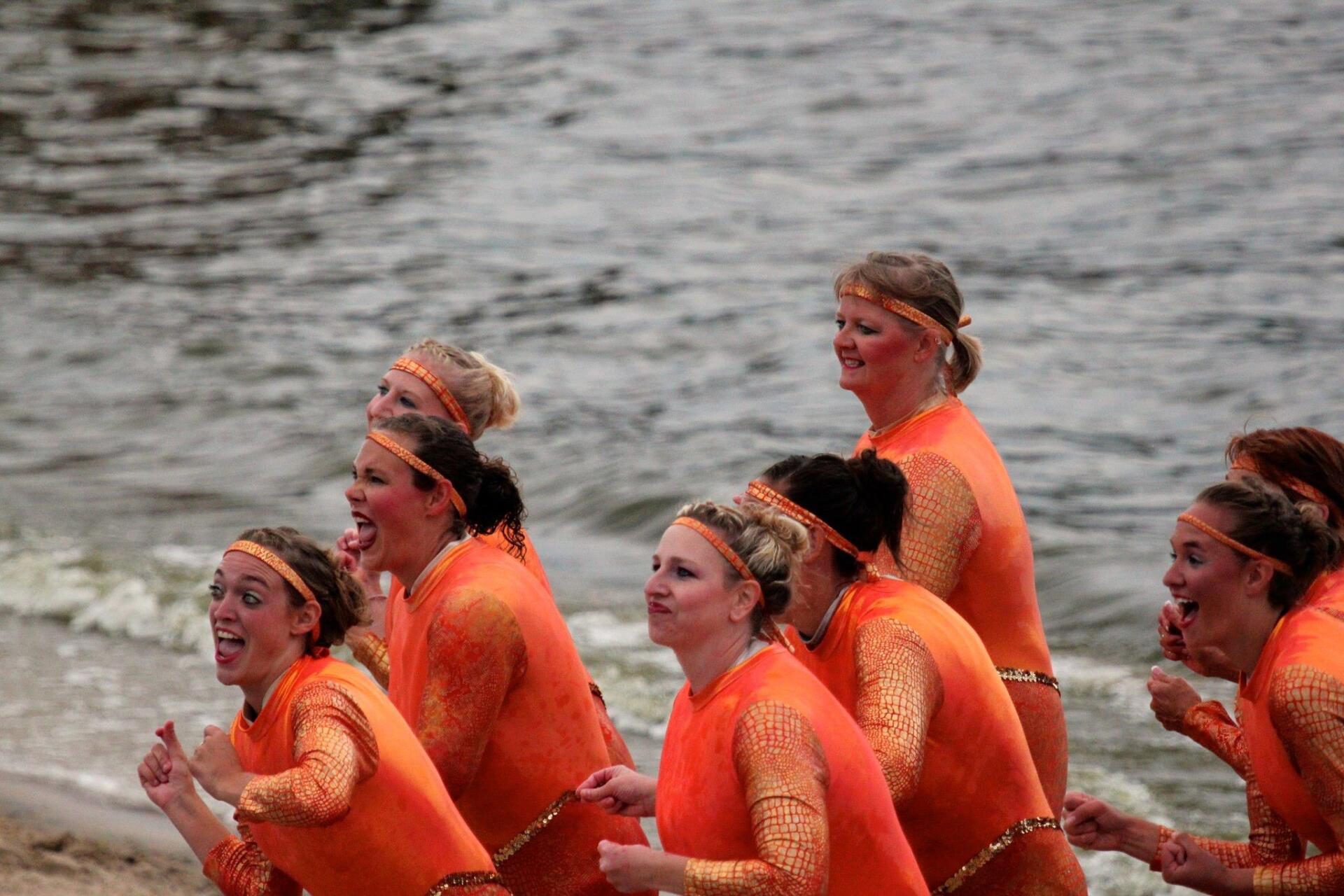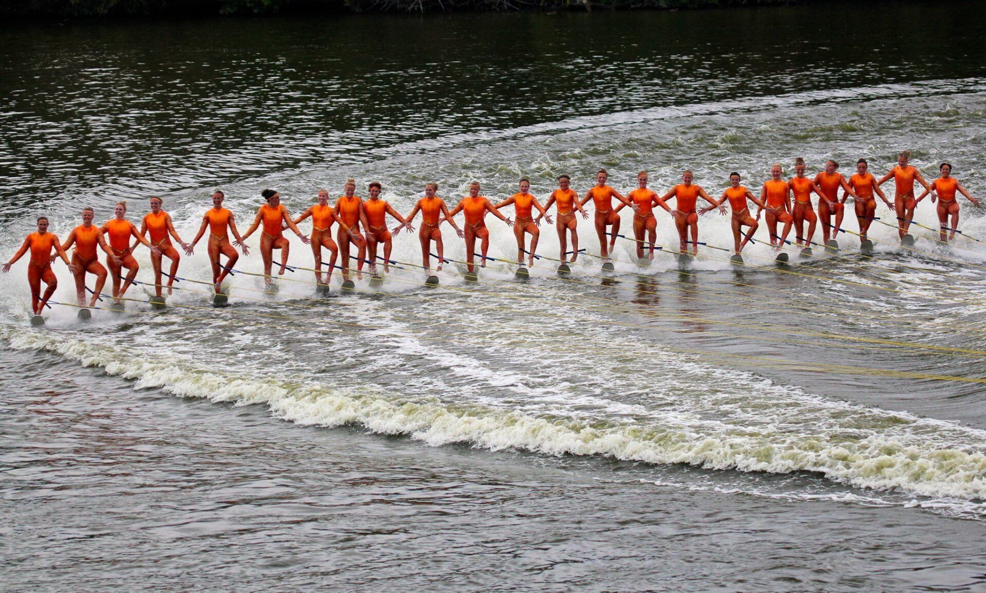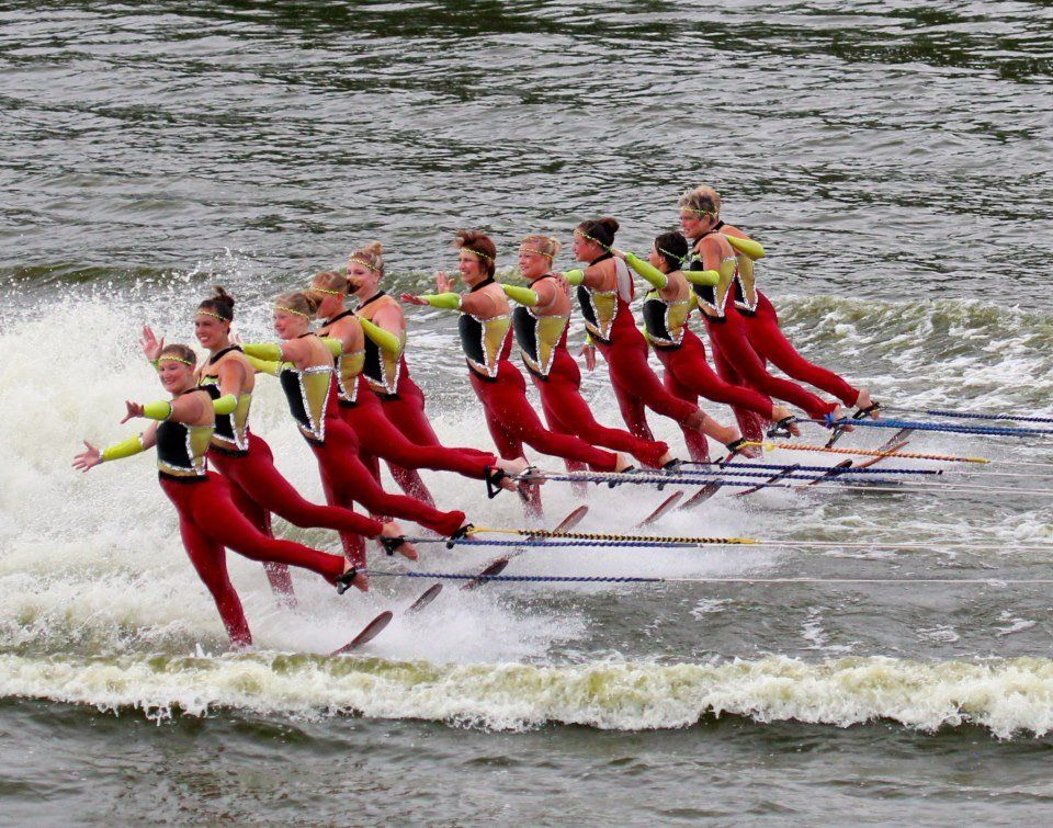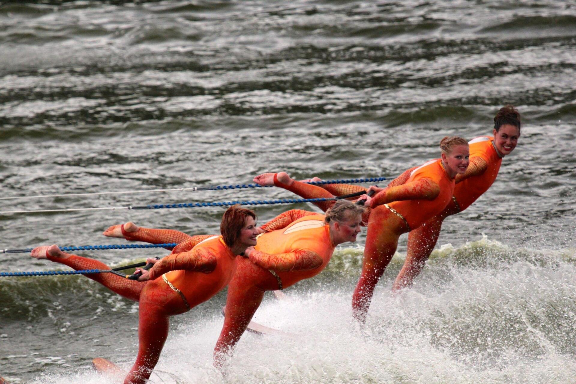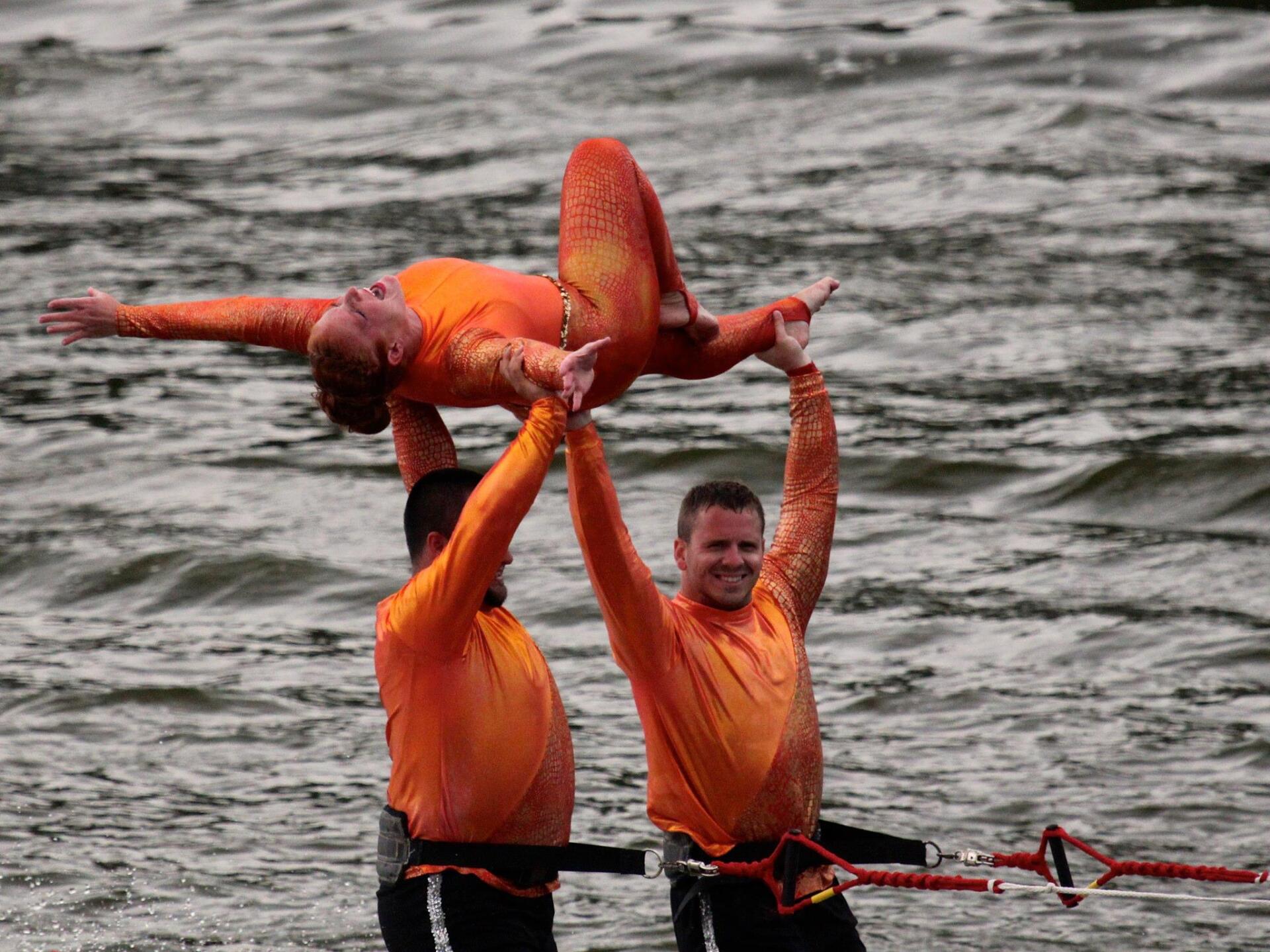 In 2012, our team maintained our large size with over 140 members. We placed second at the Central Regional Tournament at our home site. We finished in third place at the National Tournament in Janesville, WI. Trista Foster won the Willa Cook Award at the National Tournament for being the best female skier in the nation. She was also later named the NSSA Female Show Skier of the Year for 2012. In August shortly after the National tournament, the Backwater Gamblers successfully built our first 5 tier pyramid. The theme was 'Rock River Fire and Rescue'. The show directors were Scott Allender, Larry Anderson and Tagen Tipton.