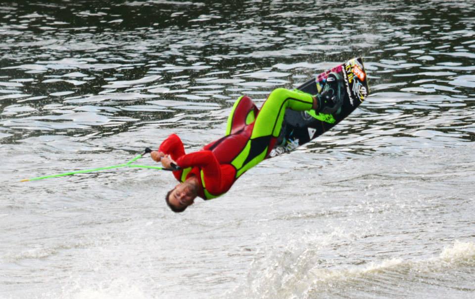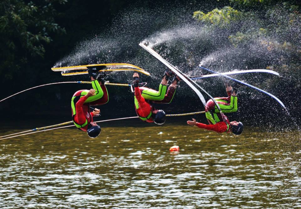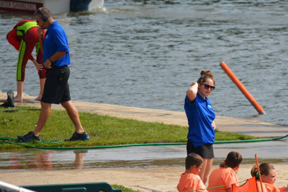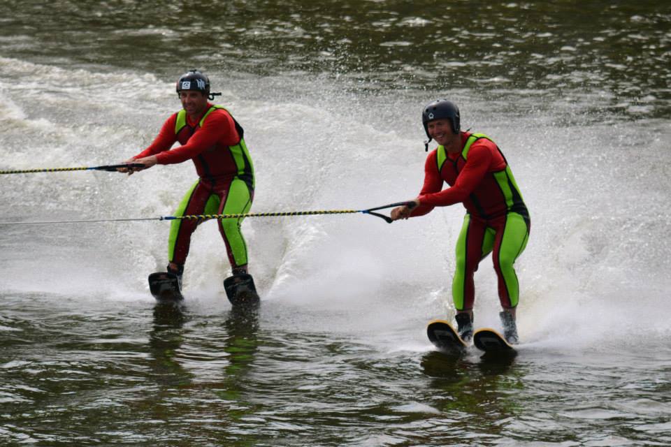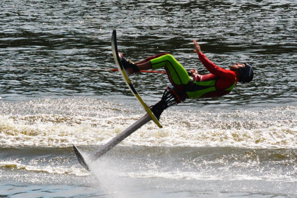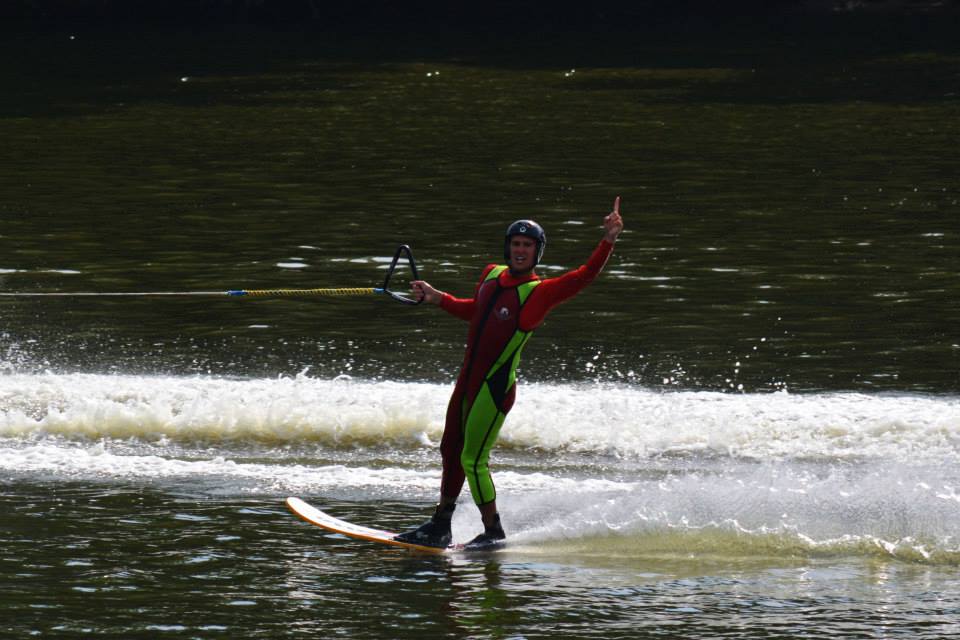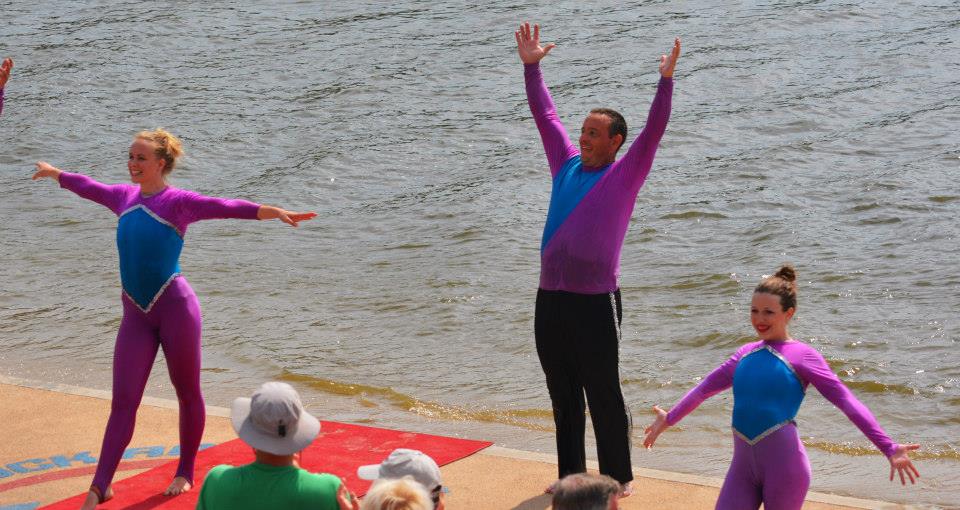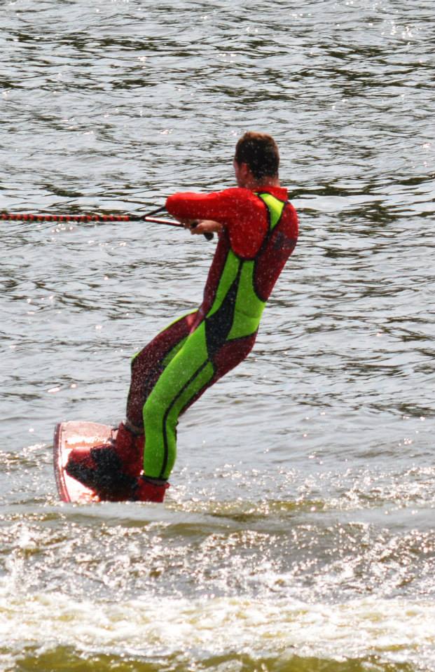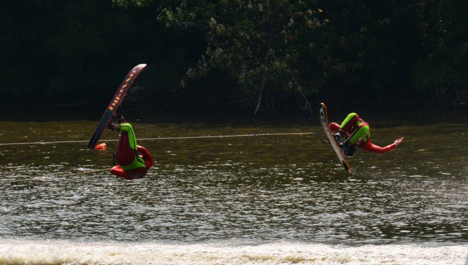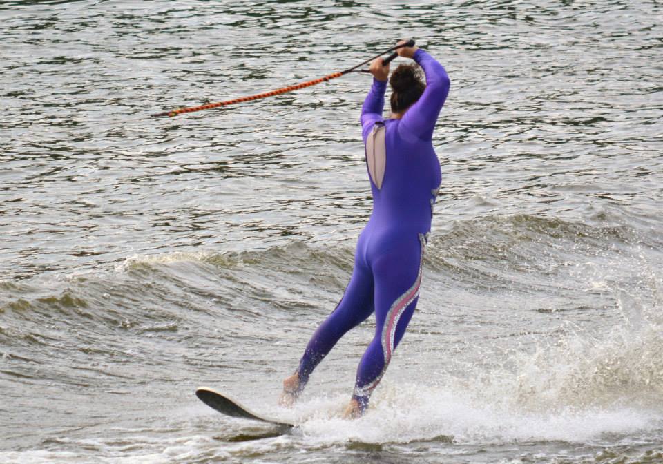 2014 boasted our most succesful season ever! Our team grew to over 160 members, the largest in history. We placed 3rd at the Mercury Open in June and, after flooding halted our practices and shows for two weeks, placed 2nd at the Central Regional tournament. We successfully built our largest pyramid ever with 47 people building four 4 tiers all behind one boat. We are only one of two teams to have ever built a pyramid that large, and we successfully climbed it up twice, and once also brought it all back down and into the beach, a feat that no other team in show skiing has ever done. We placed second place at the National Tournament in Janesville, Wisconsin, our best placement ever! We had more rides in our National show than any other team ever. We also won the award for highest scoring pyramid for our four 4 tier pyramid (of which we had 2 skiers fall). The theme was 'Choppy Water: My Life as a Water Ski Show Skier'. The show directors were Scott Allender and Tagen Tipton.