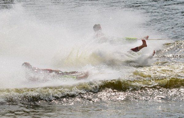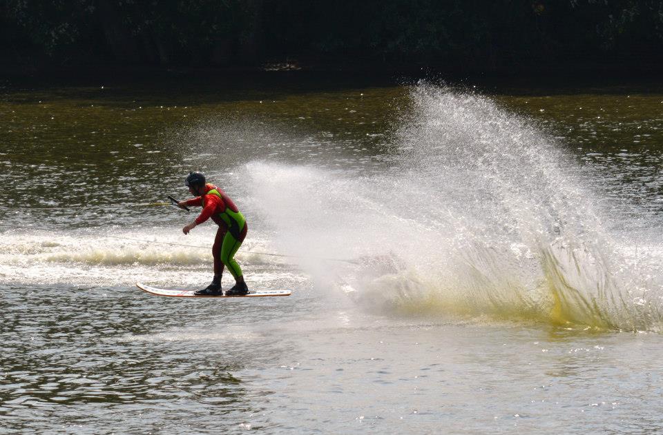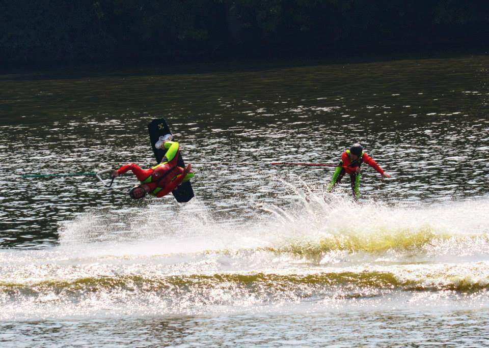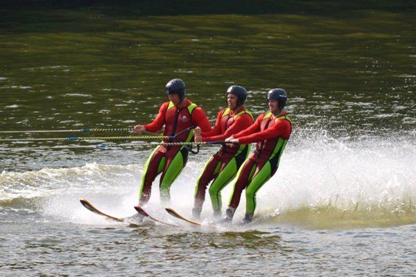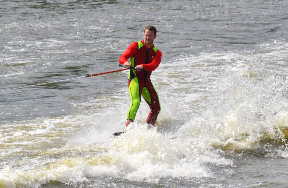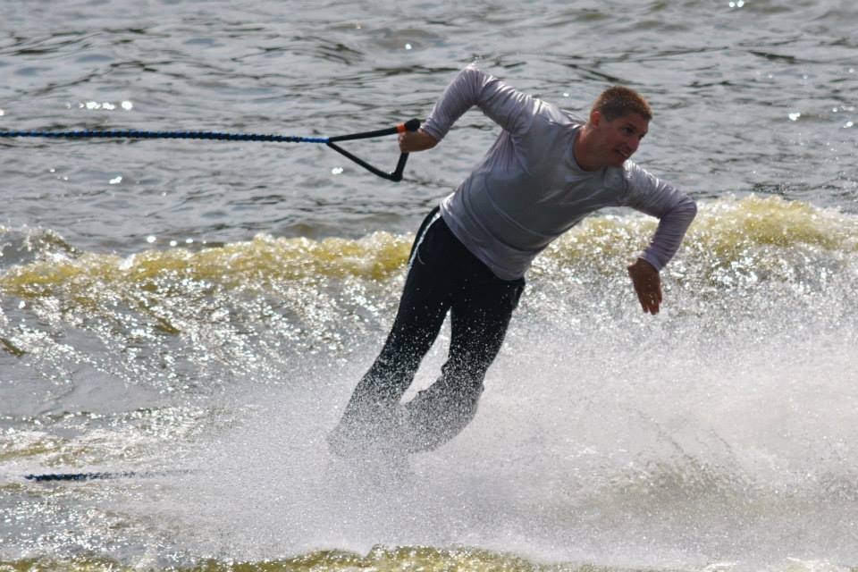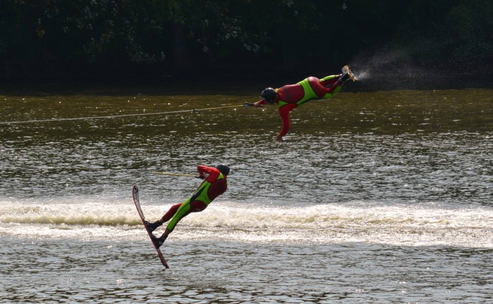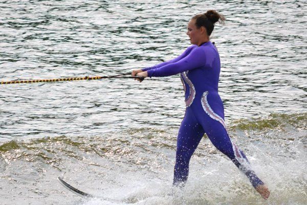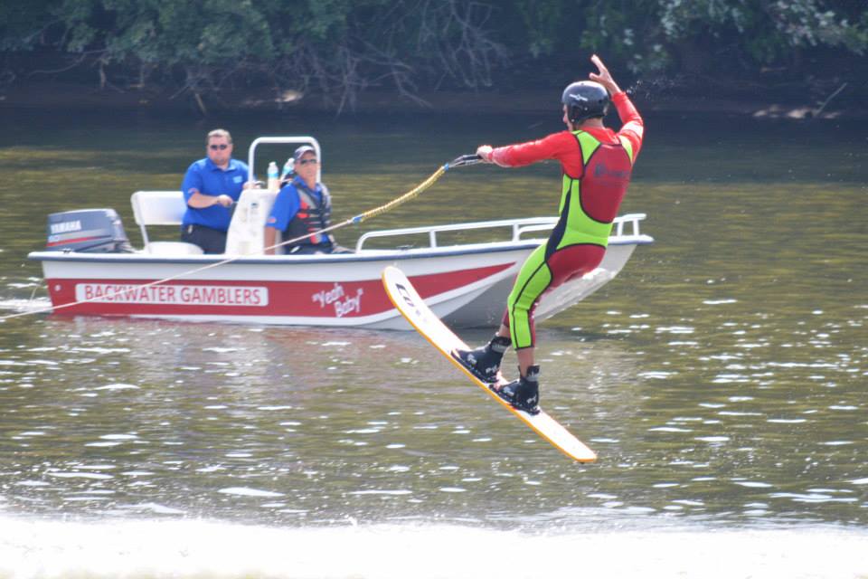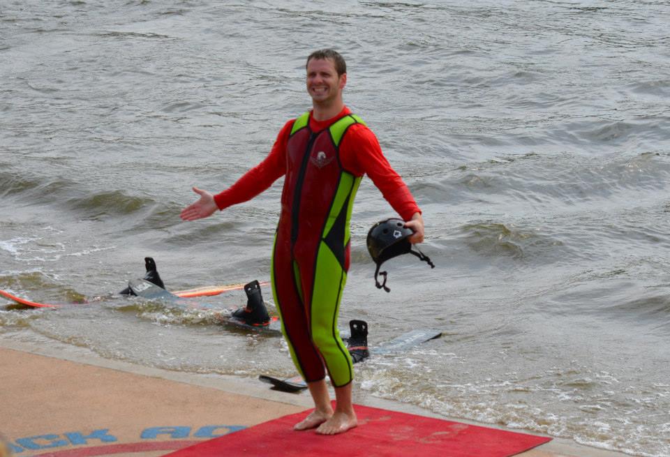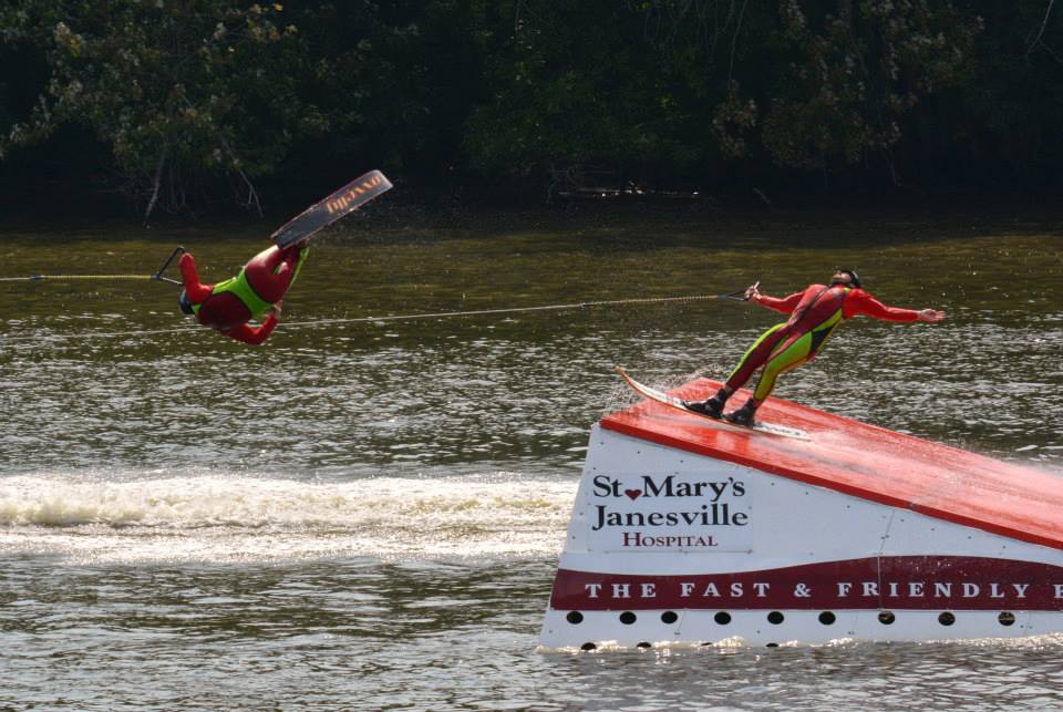 2014 boasted our most succesful season ever! Our team grew to over 160 members, the largest in history. We placed 3rd at the Mercury Open in June and, after flooding halted our practices and shows for two weeks, placed 2nd at the Central Regional tournament. We successfully built our largest pyramid ever with 47 people building four 4 tiers all behind one boat. We are only one of two teams to have ever built a pyramid that large, and we successfully climbed it up twice, and once also brought it all back down and into the beach, a feat that no other team in show skiing has ever done. We placed second place at the National Tournament in Janesville, Wisconsin, our best placement ever! We had more rides in our National show than any other team ever. We also won the award for highest scoring pyramid for our four 4 tier pyramid (of which we had 2 skiers fall). The theme was 'Choppy Water: My Life as a Water Ski Show Skier'. The show directors were Scott Allender and Tagen Tipton.
