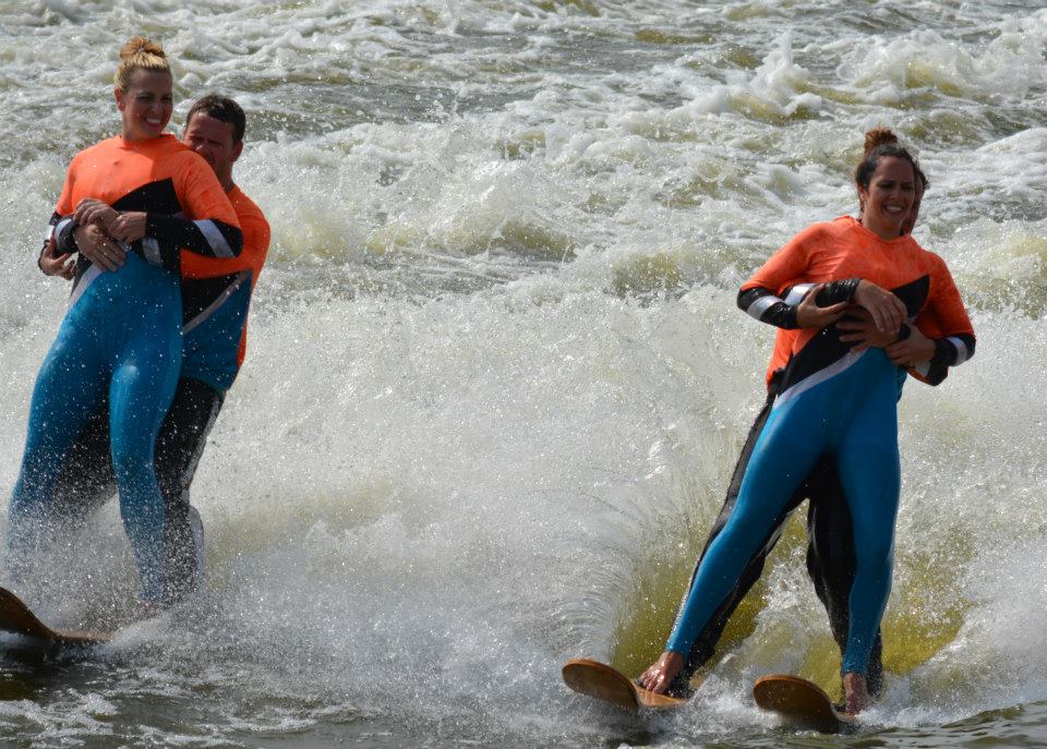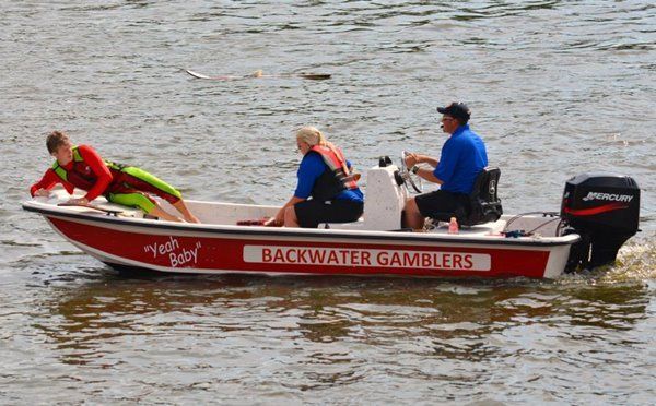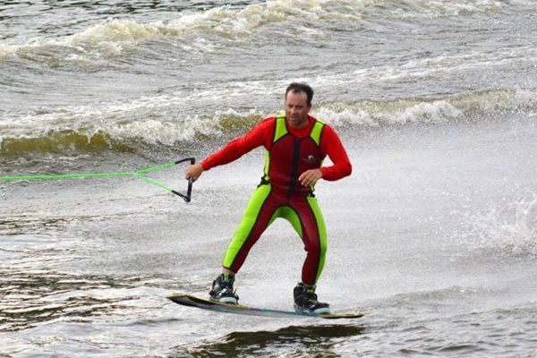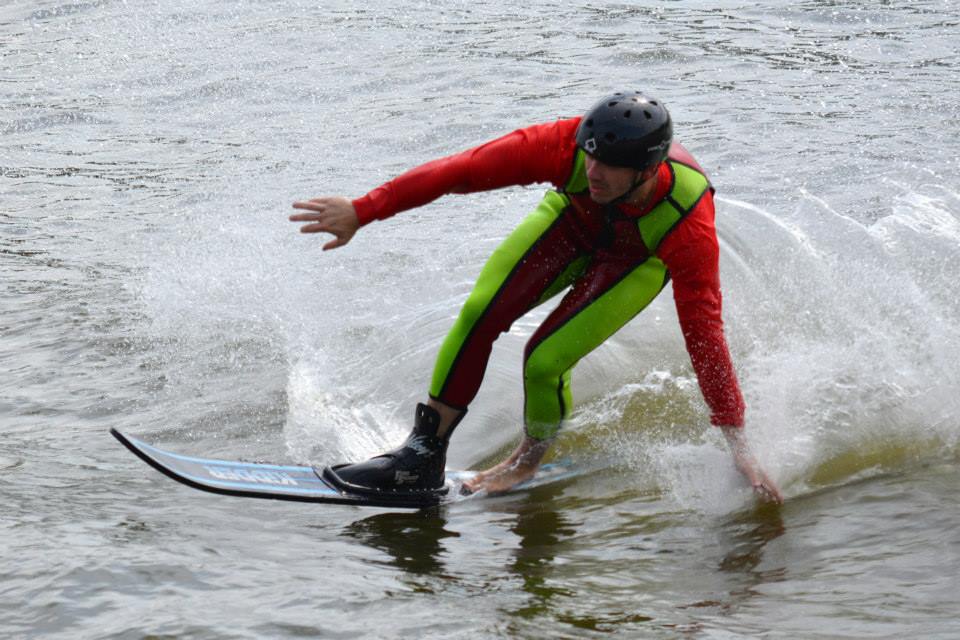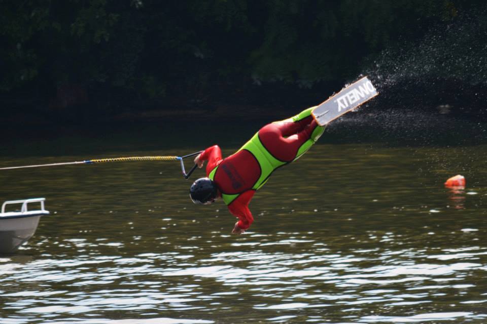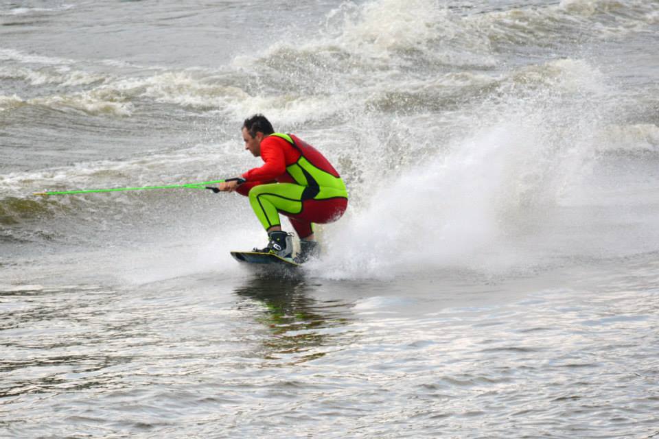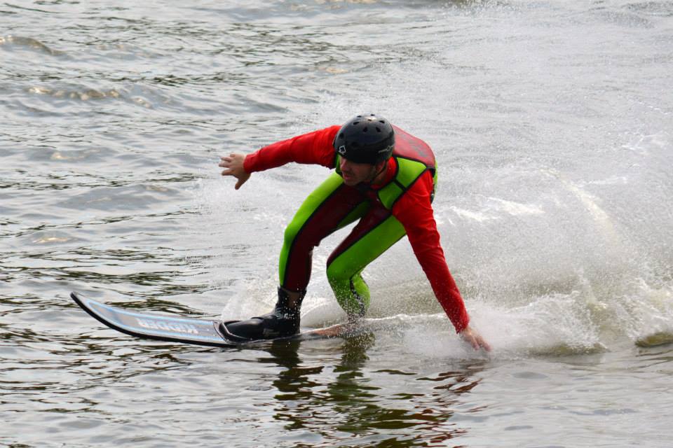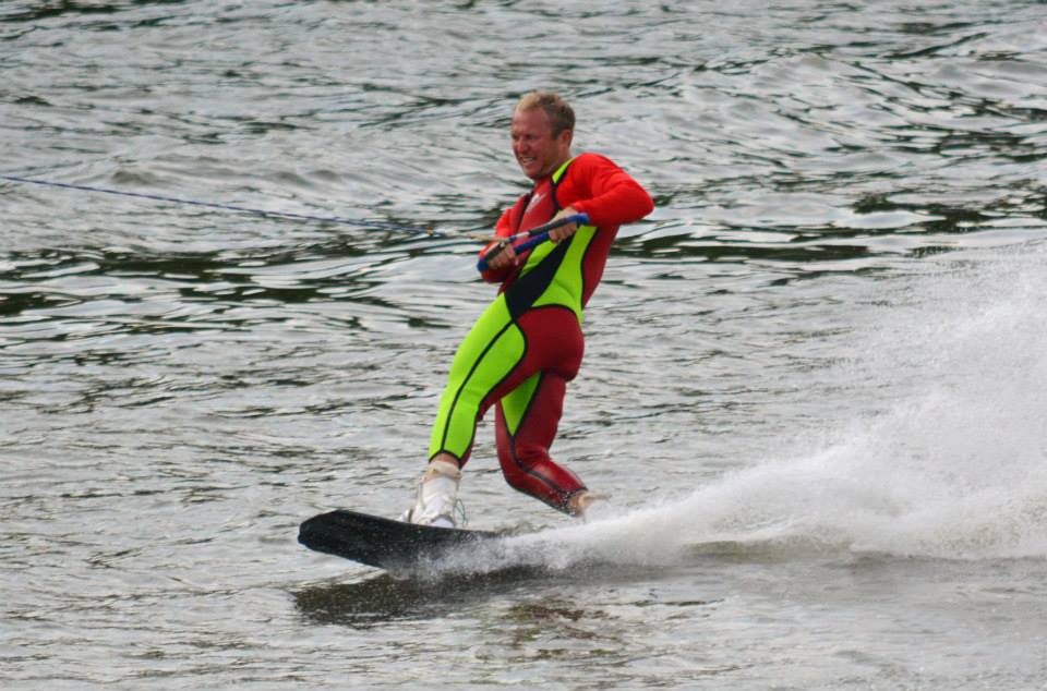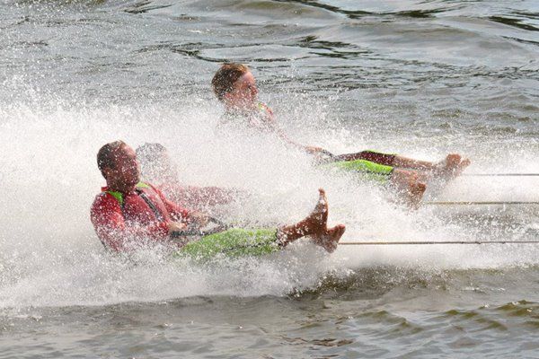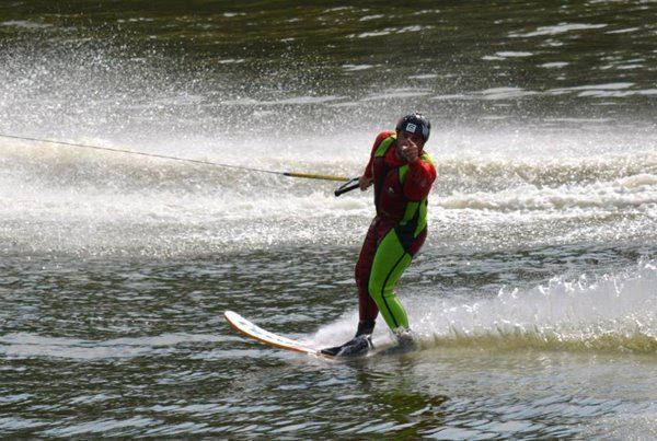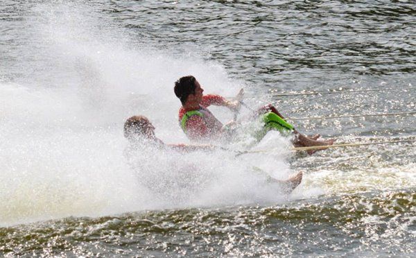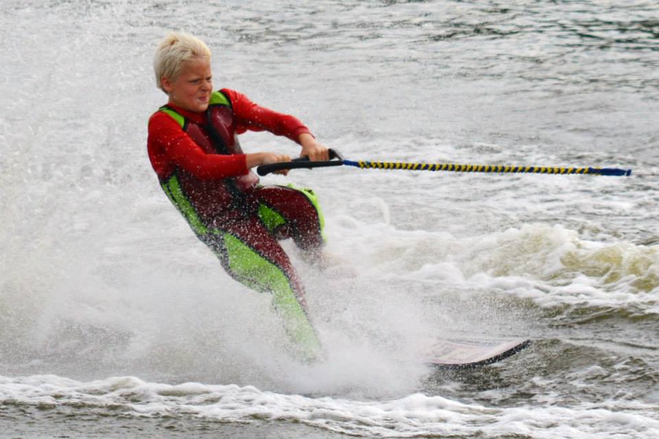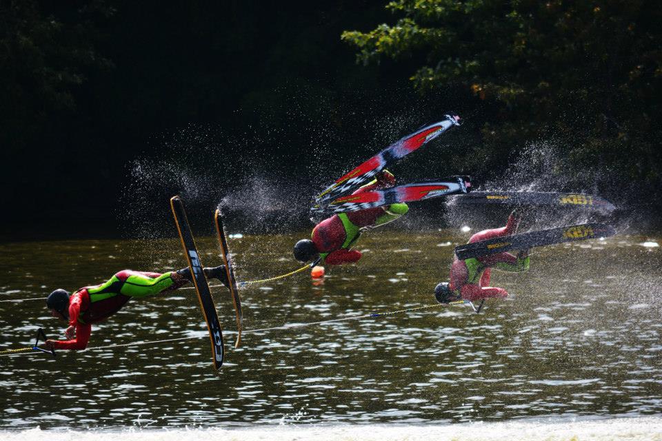 2014 boasted our most succesful season ever! Our team grew to over 160 members, the largest in history. We placed 3rd at the Mercury Open in June and, after flooding halted our practices and shows for two weeks, placed 2nd at the Central Regional tournament. We successfully built our largest pyramid ever with 47 people building four 4 tiers all behind one boat. We are only one of two teams to have ever built a pyramid that large, and we successfully climbed it up twice, and once also brought it all back down and into the beach, a feat that no other team in show skiing has ever done. We placed second place at the National Tournament in Janesville, Wisconsin, our best placement ever! We had more rides in our National show than any other team ever. We also won the award for highest scoring pyramid for our four 4 tier pyramid (of which we had 2 skiers fall). The theme was 'Choppy Water: My Life as a Water Ski Show Skier'. The show directors were Scott Allender and Tagen Tipton.