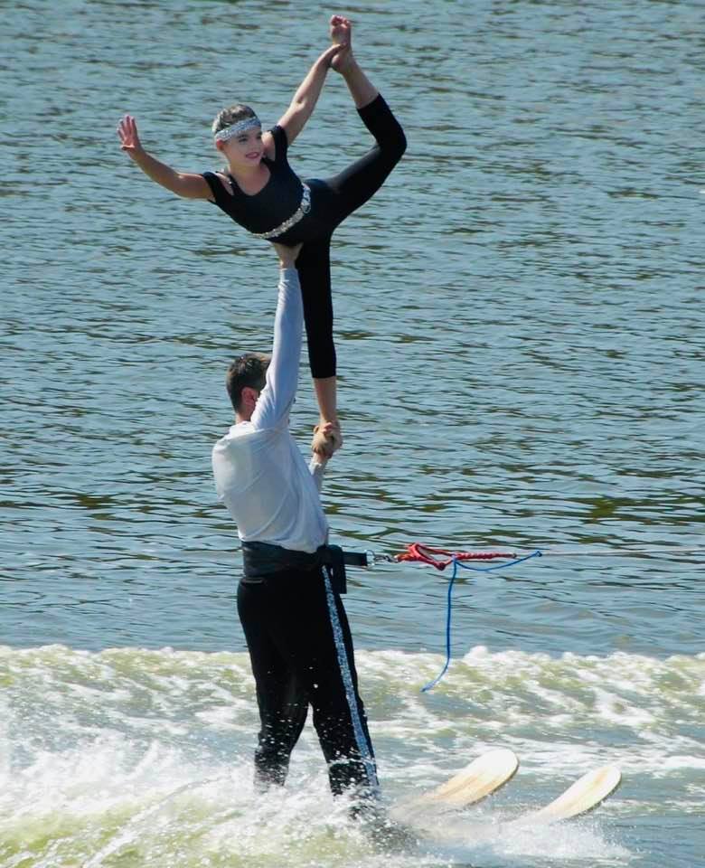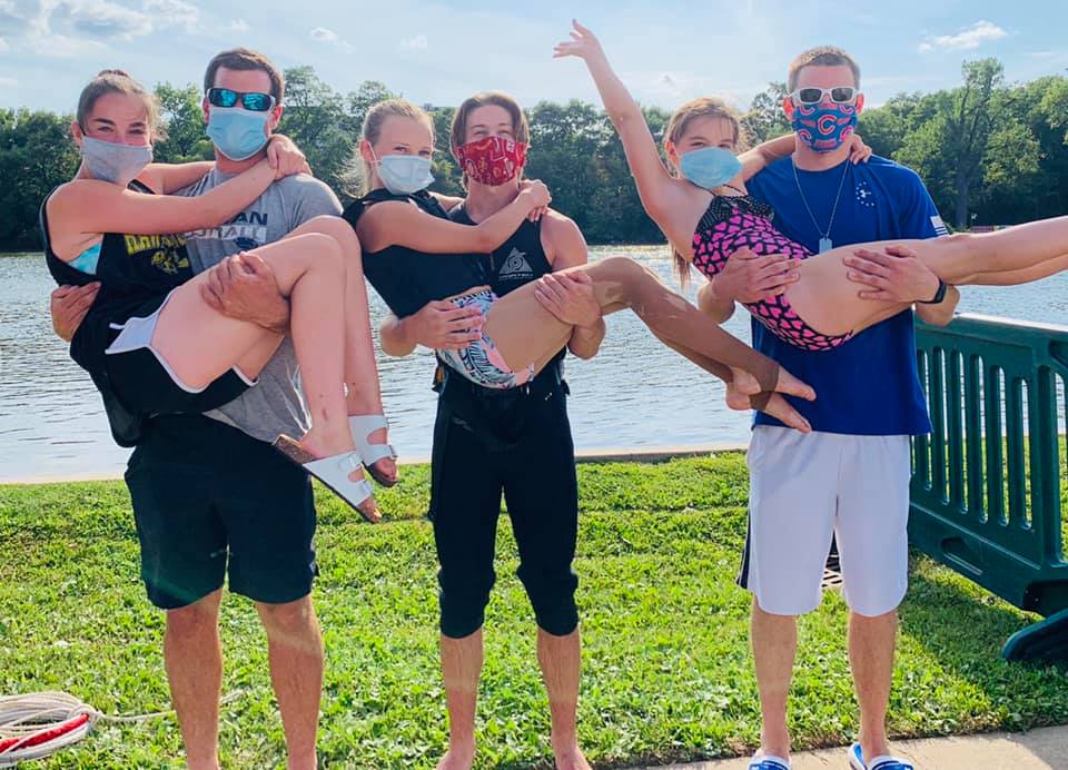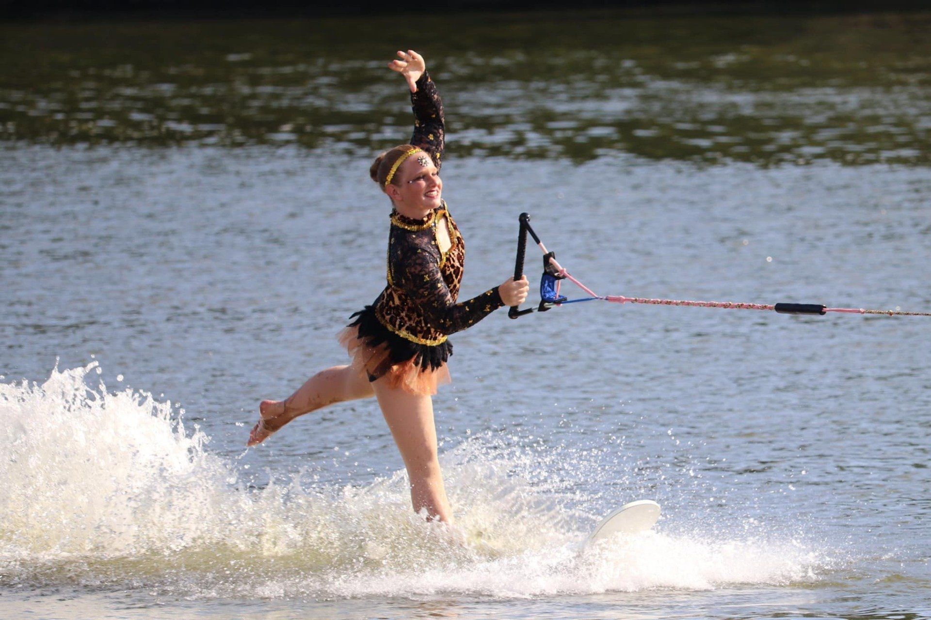 The 2020 season was canceled due to the Covid-19 pandemic. We were not allowed to perform any shows, hold any team practices, and all team competitions were canceled in order to comply with USA Water Ski and the state of Illinois' guidelines. We were allowed to have individual practices, and a National Individual Tournament was held in August in which several of our members participated. Connie Ross placed 12th in Open Swivel. Matthew Becker and Kendall Scott placed 7th in Open Strap Doubles. In Intermediate Strap Doubles, Jordan Allender and Kennedy Scott placed 2nd, and Colby Ridgley and Grace Powell placed 5th.
