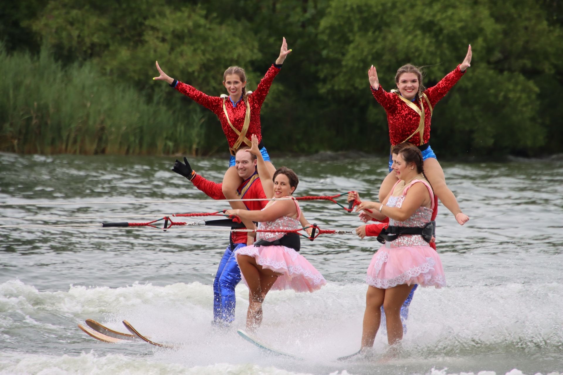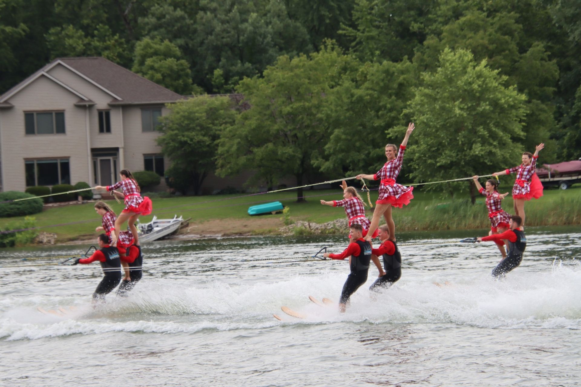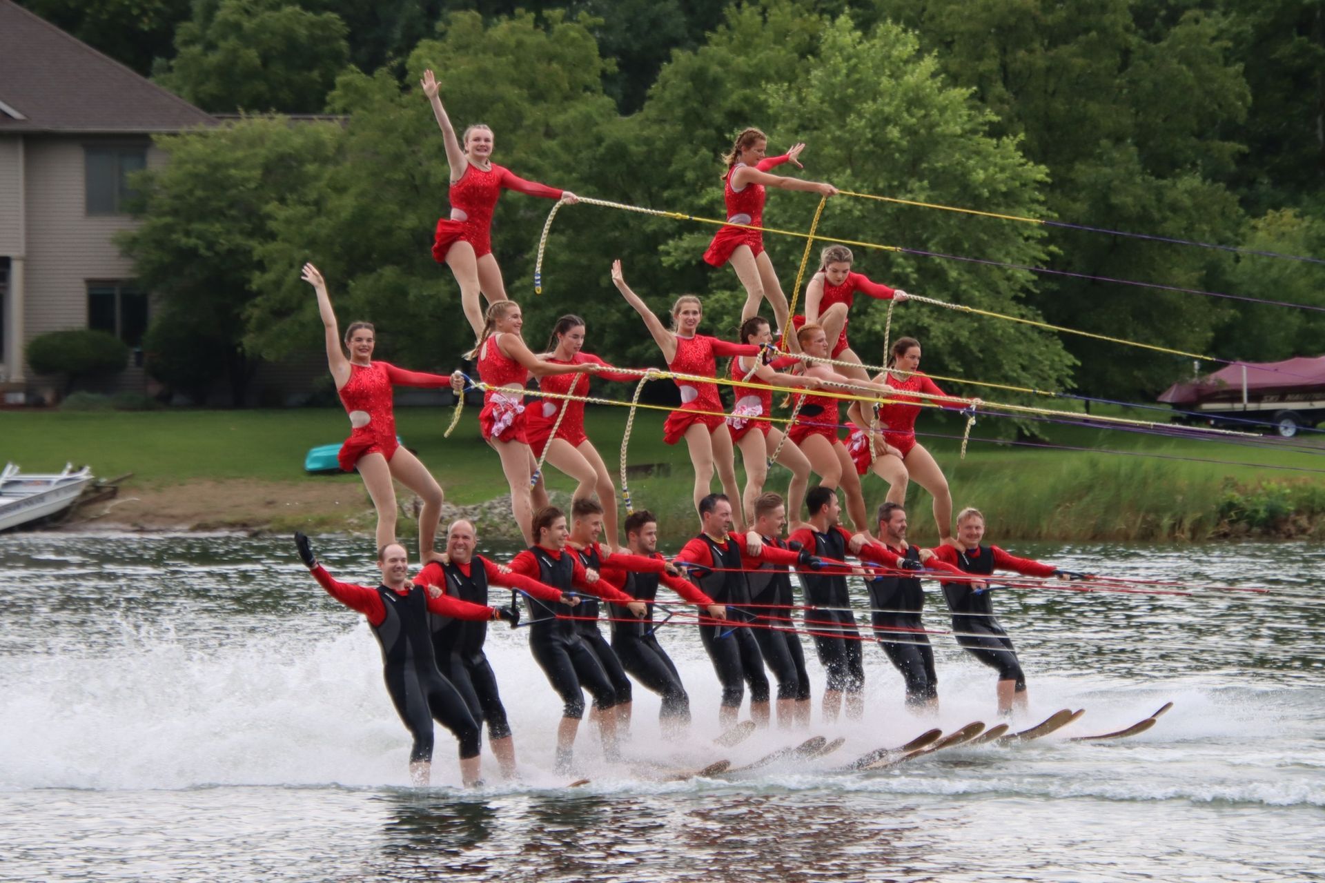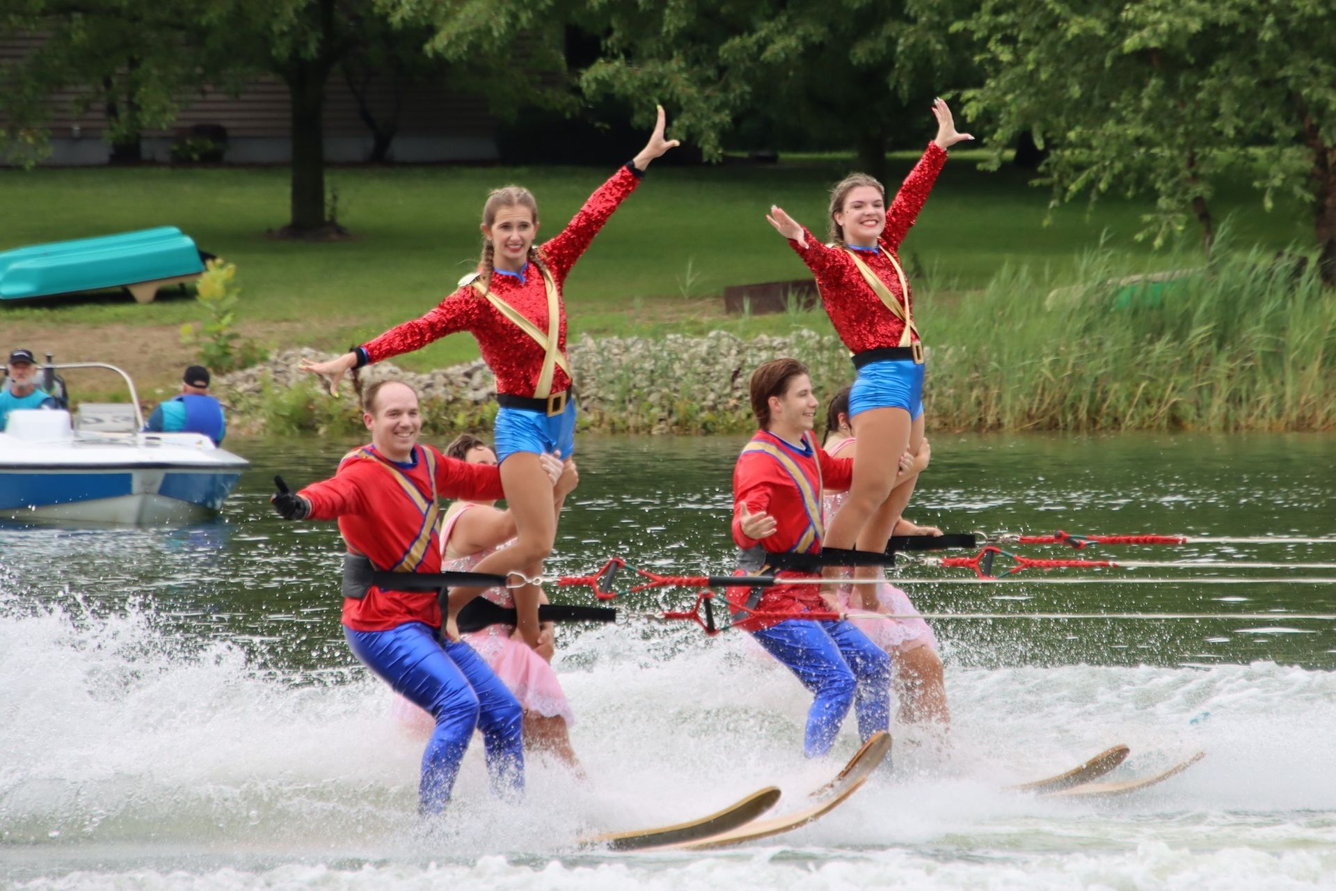 2024 was a difficult year. Off and on flooding caused us to cancel about a month's worth of shows and practices between June and July. Despite the difficult conditions, we gained around 20 new members throughout the season which helped us maintain a membership of around 120. Flooding on the Rock River caused the Central Regional and National Tournaments to move from Loves Park, IL to Warsaw, Indiana. We placed 5th at Central Regionals, with Jordan Allender and Kennedy Scott placing 1st in Intermediate Strap Doubles and the jump team placing 2nd. Although the full team did not compete at the National Tournament, the jump team placed 5th in the individual team jump event. The theme was "Home Alone". The show directors were Jordan Allender and Elisabeth Anderson with assistant Danielle Allender.