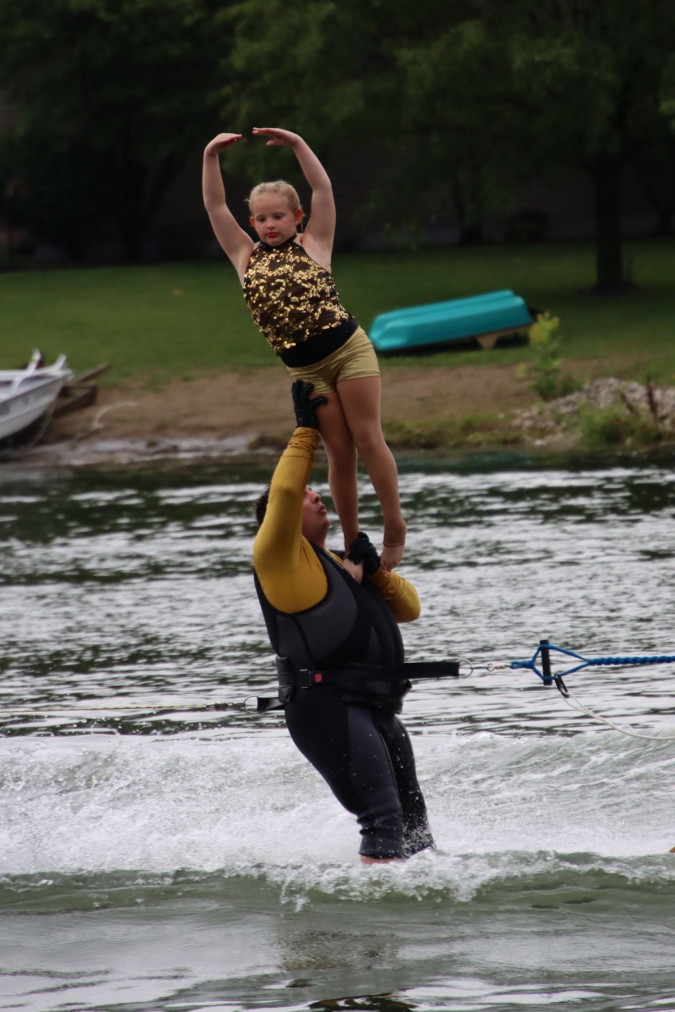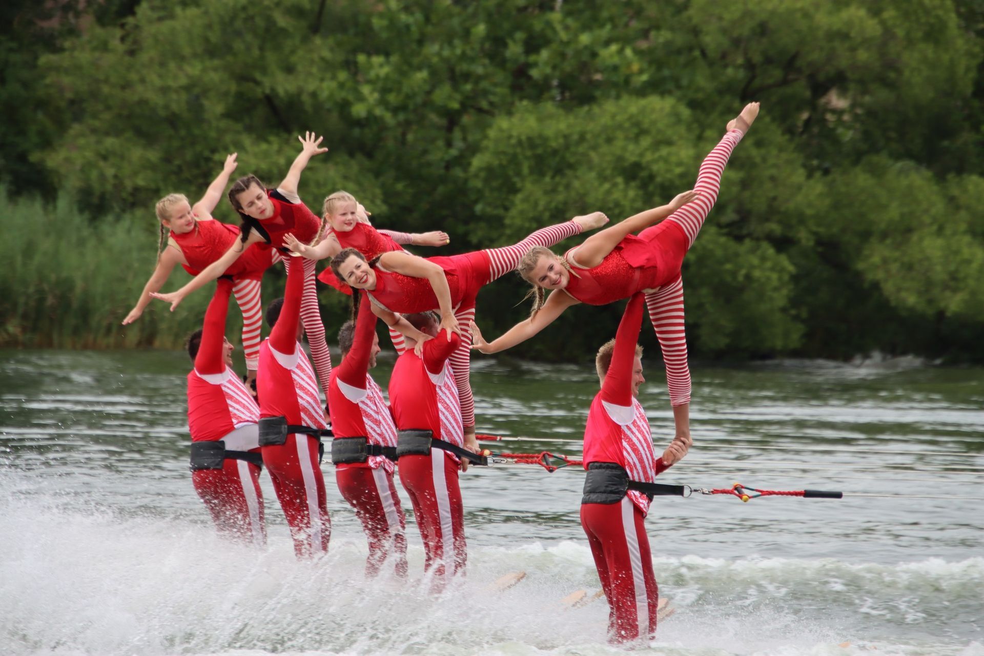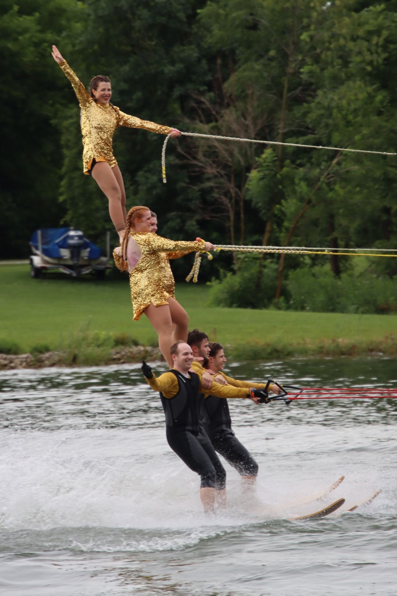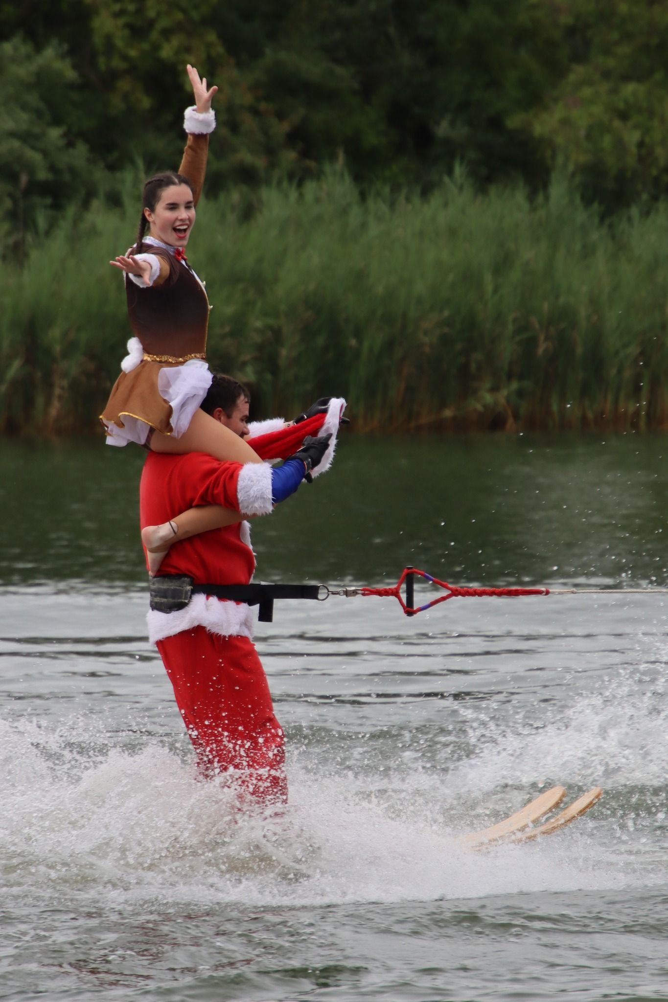 2024 was a difficult year. Off and on flooding caused us to cancel about a month's worth of shows and practices between June and July. Despite the difficult conditions, we gained around 20 new members throughout the season which helped us maintain a membership of around 120. Flooding on the Rock River caused the Central Regional and National Tournaments to move from Loves Park, IL to Warsaw, Indiana. We placed 5th at Central Regionals, with Jordan Allender and Kennedy Scott placing 1st in Intermediate Strap Doubles and the jump team placing 2nd. Although the full team did not compete at the National Tournament, the jump team placed 5th in the individual team jump event. The theme was "Home Alone". The show directors were Jordan Allender and Elisabeth Anderson with assistant Danielle Allender.